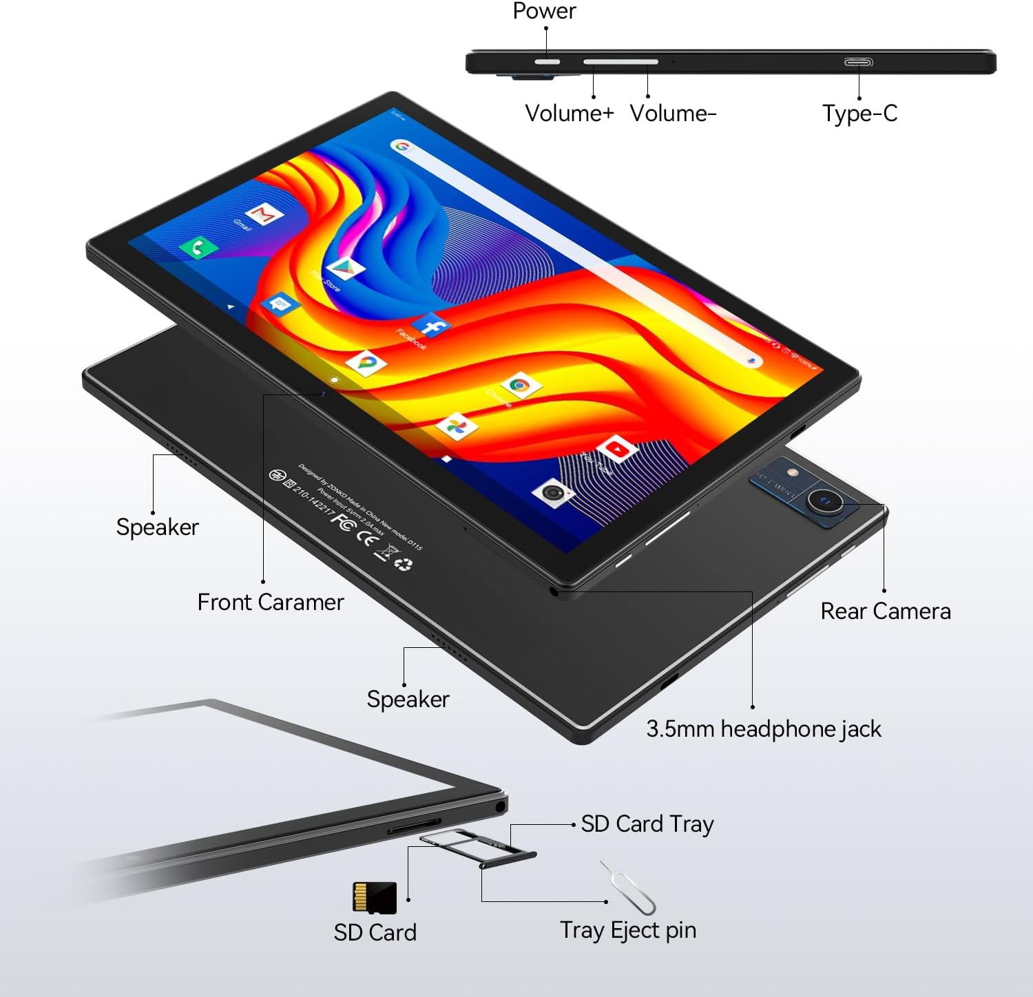 👍【Everything included in the package】Comes with many accessories, no need to buy anything, think everything for you. Perfect for Christmas, Birthday, Valentine's Day, Mother's Day, Father's Day, Wedding, Thanksgiving Day or Graduation. Comforting surprise for your friends, children, parents or anyone who wants to share happiness. Package: 1 x ZONKO Tablet 1 x Tablet Case 1 x Bluetooth Keyboard 1 x Wireless Mouse 1 x Touch Pen 1 x Screen Protector 1 x OTG Adapter 1 x Type-C Cable 1 x Charger 1 x Card Tray Eject Pin SD 1 x User Manual Attention: The following pictures have detailed instructions on how to use those accessories or you can contact our seller for more help.