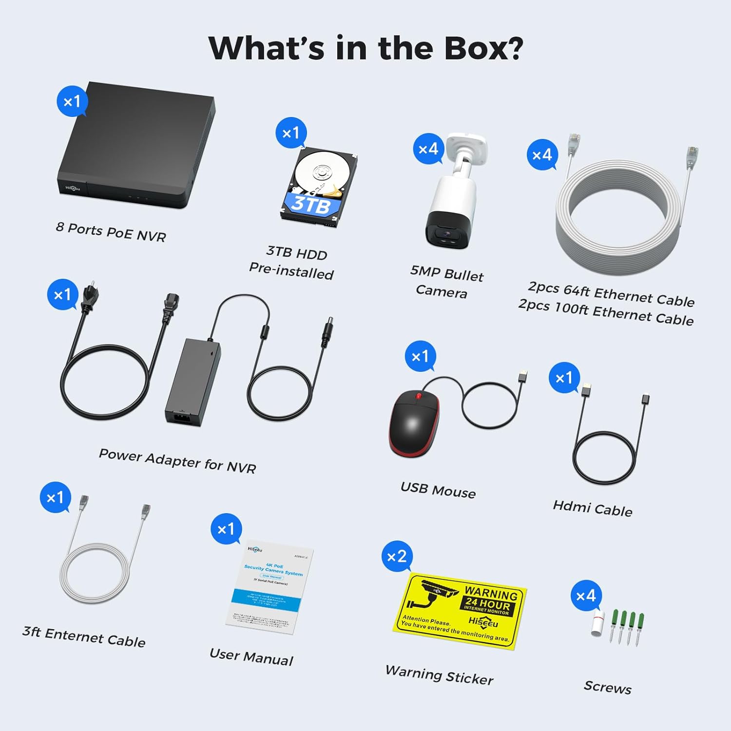 【3TB HDD + 7/24/365 Recording + Smart Playback】We have several recording modes such as ①Regular 7/24/365 ②Motion detection recording. AI Algorithm Tech allows you to select a certain period to play the videos you want (Important Notes: US store comes with 3TB hard drive, Canada store comes with 1TB hard drive)