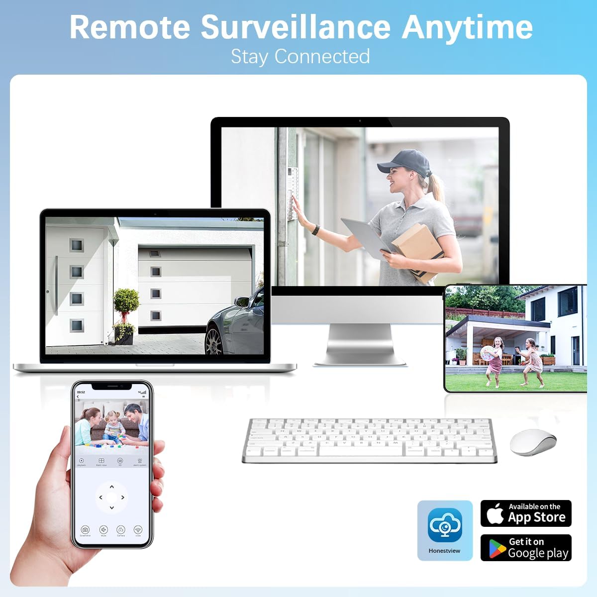【There are no monthly rates for the application】 Download the “honestview” application free of the application store to remotely see your videos on your smartphone (iOS & Android), PCs or tablets. This cable security system, which includes night vision cameras, offers a convenient and profitable solution for home safety. It is also suitable for companies that need a reliable security chamber system. Cable cameras for home safety are easy to configure and compatible with the “home security camera system” too.
