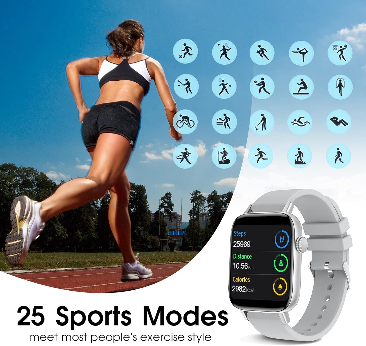 Activity Tracker Watch: Supports 25 sports modes, such as walking, running, cycling, skipping, badminton, basketball and football, etc.