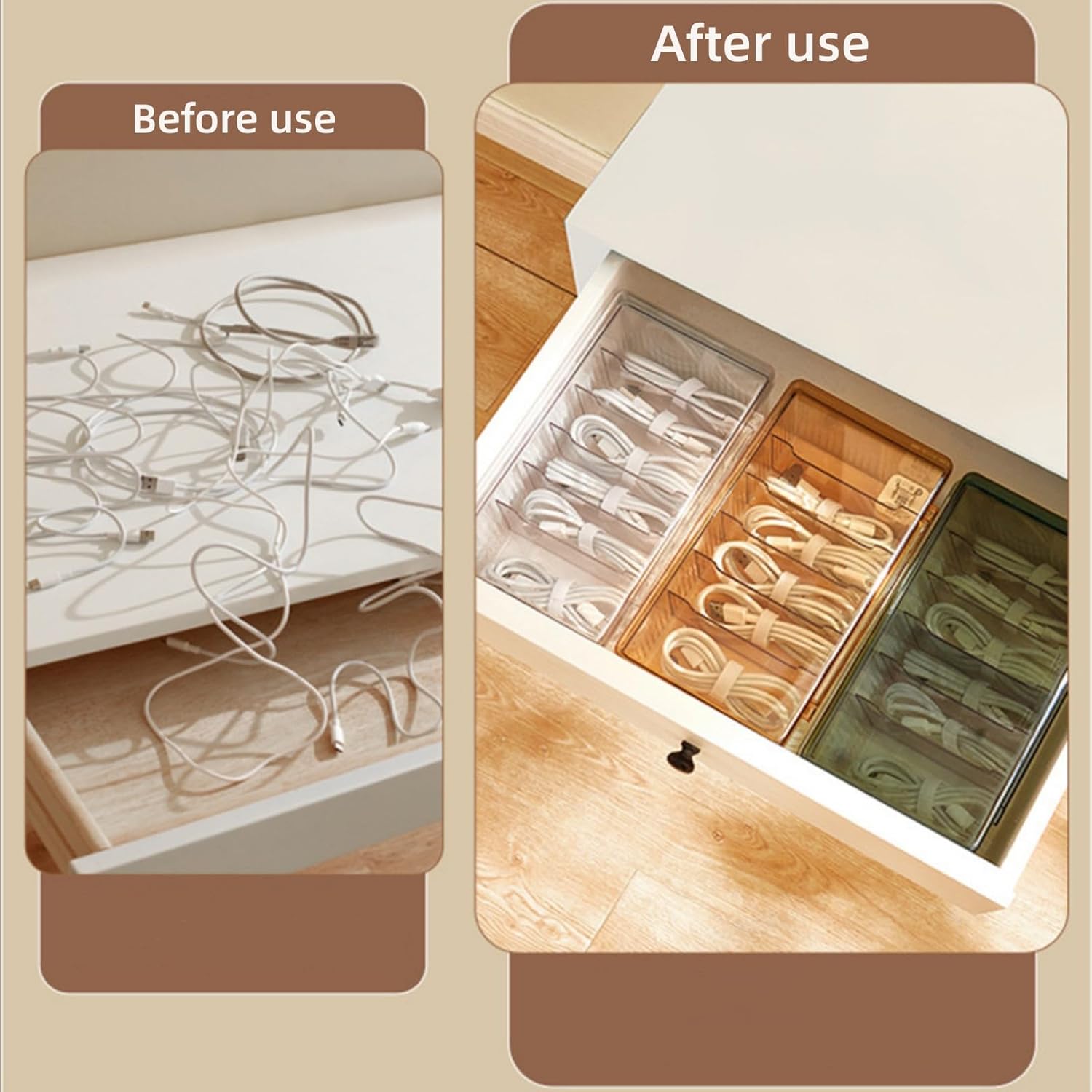 · Broad application: The containers of this organizer facilitate the organization of electronic accessories and several cables such as charger, energy bank, Usb cable, headset. It can also be a cosmetic box to store earrings, eye shadows, watches and lipsticks, and an office supplies organizer to hold cards, paper clips, clamps, clamps, adhesive notes and more. Very suitable for use at home and office