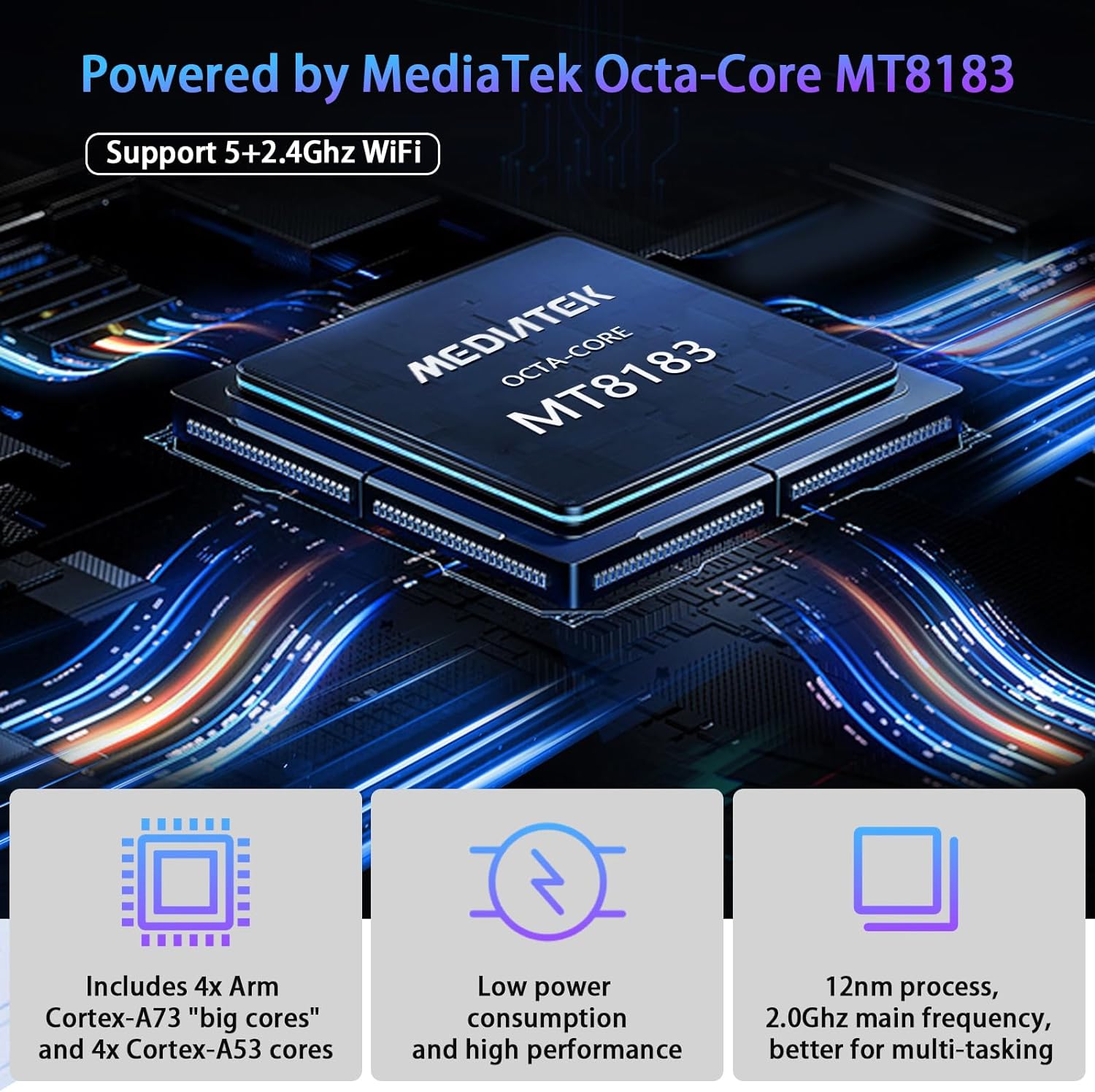 【Maximum & Powerful Performance】2024 New Release Tablet is equipped with 2.0Ghz MTK8183 octa-core processor with quad Arm NEON engines clocked up to 2GHz Arm Cortex-A73 & Cortex-A53 MPCore TM, enabling this Android tablet to multitask quickly, more suitable for all ages.