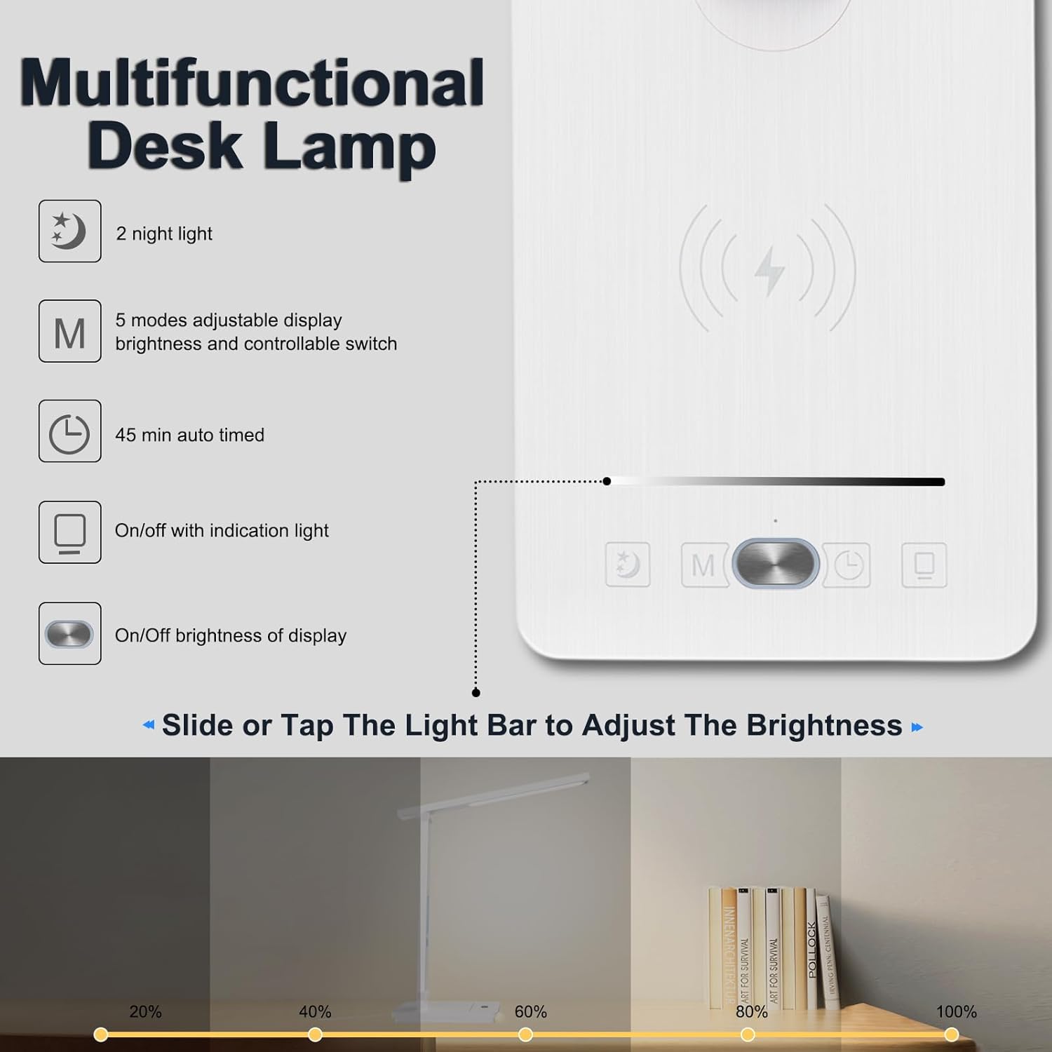 【Desktop lamp with a high -speed wireless loader of 10 W】 This desktop lamp with USB cargo port supports the Qi wireless load protocol, which makes it a desk lamp and a wireless charger. So this LED lamp desk can load two mobile devices simultaneously while serving as a lamp, provided that the reading table for the bed table is on. In addition, the LED of the desk lamp presents an automatic 45 -minute timer function, ensuring that you do not have to worry about falling asleep while reading books at night. It also includes a high power adapter of 12V/2a, 24 W, which provides robust support to load two devices at the same time.