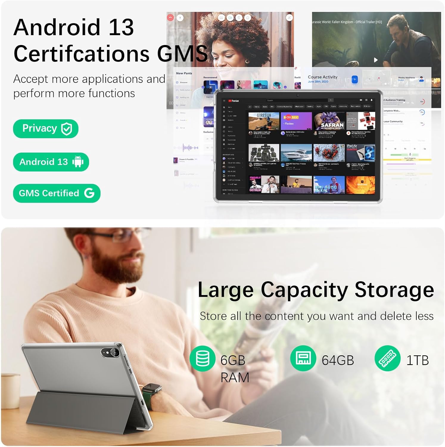 Long-lasting Battery: Equipped with a durable 6000mAh battery, the Android 13 tablet is built to last a long time. Study, work, or play uninterrupted from dawn to dusk with up to 8 hours of normal operation and enjoy up to 12 additional hours of standby time.