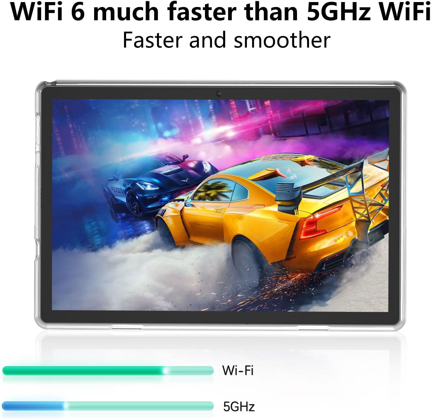 Faster Responsive Performance: At the heart of our 10 inch tablet is the powerful Android 13.0 with Bluetooth 5.0, 2.4G/5G WIFI6, 8GB RAM, 128GB ROM and a 2.0GHz quad-core processor. Expand the storage capacity up to 1TB with an additional microSD card slot to store all the content you need.