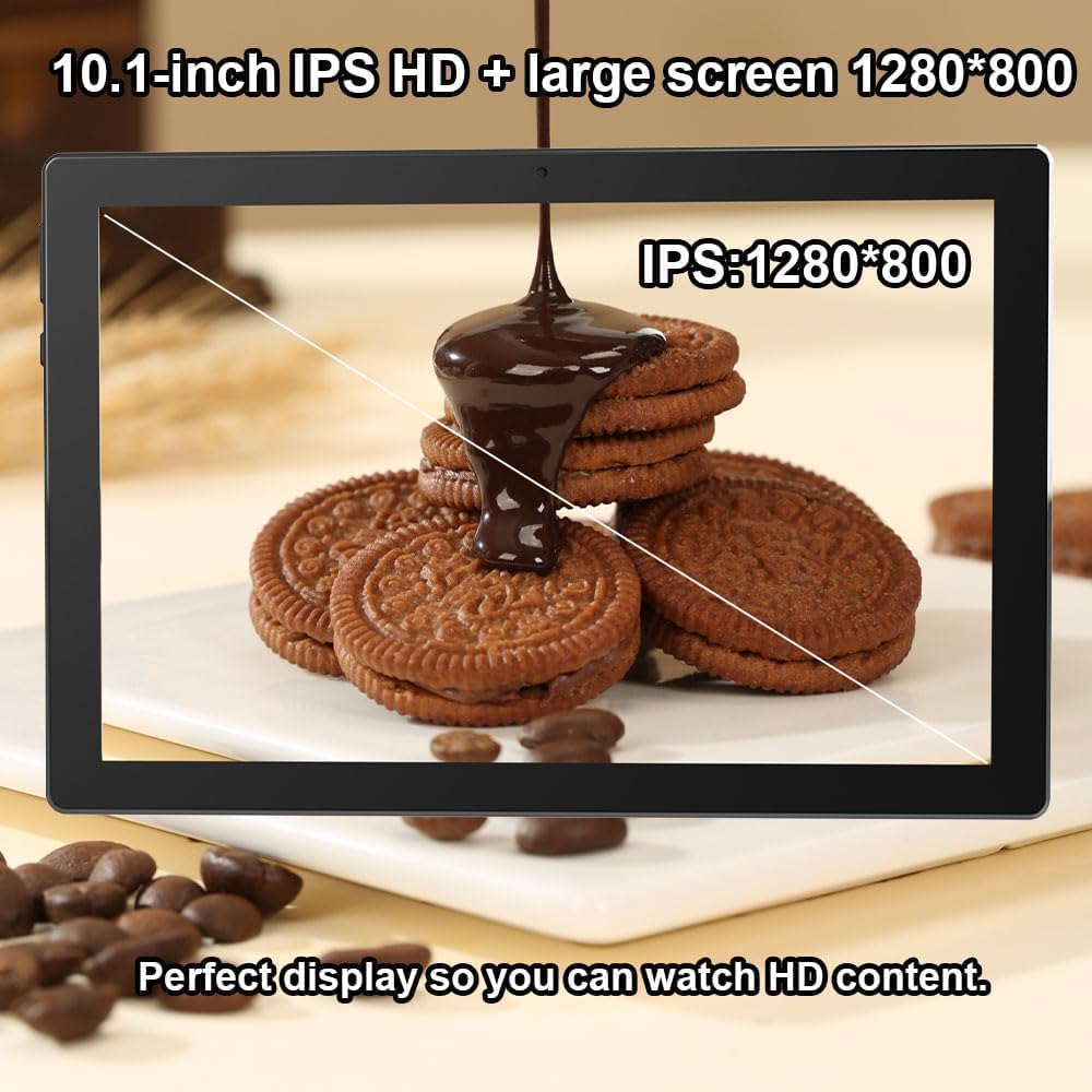 【10.1 Inch HD Screen Tablet】 Stunning 10 inch eye protection full screen has a larger visual area and wider field of view, adopts 1280*800 IPS HD touch screen, whether you play games, watch movies , read, take notes and work, it can bring you immersive visual enjoyment.