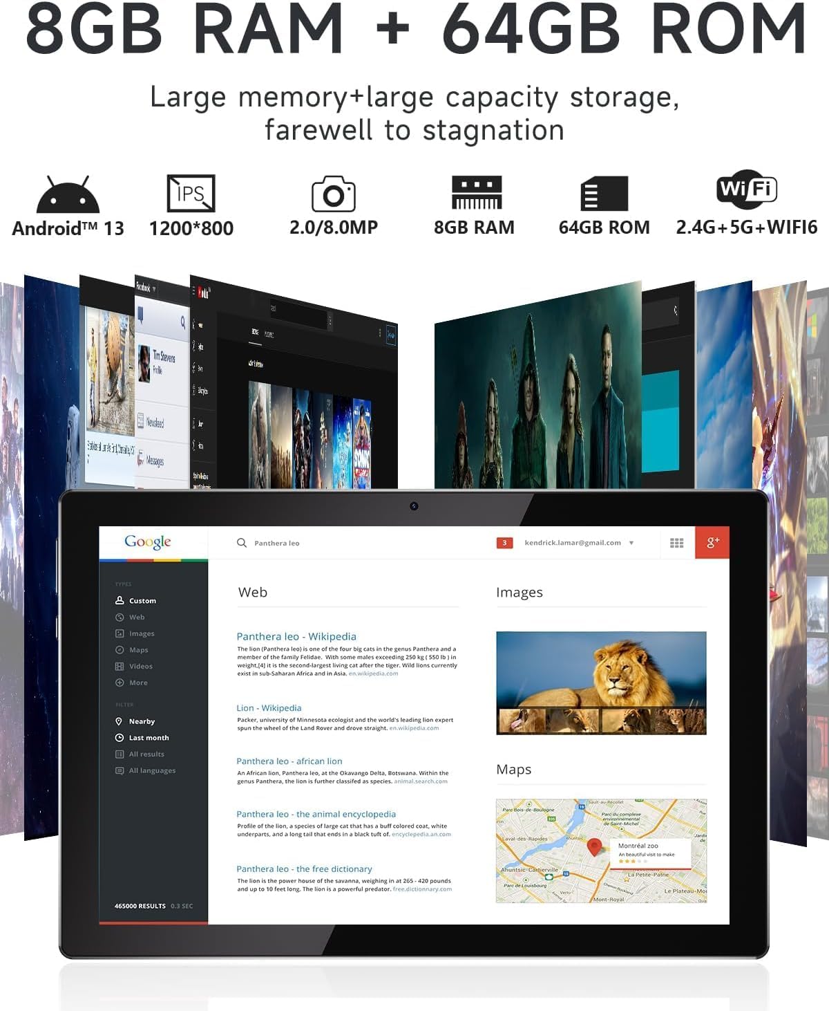 The Android 13 tablet runs on the latest version of Android 13.0 operating system. It can better protect your privacy and comes with Google Play Store from where you can simply download any app you want such as Facebook, Instagram, Tiktok, YouTube, WhatsApp, Disney+, Netflix, Zoom, etc.
