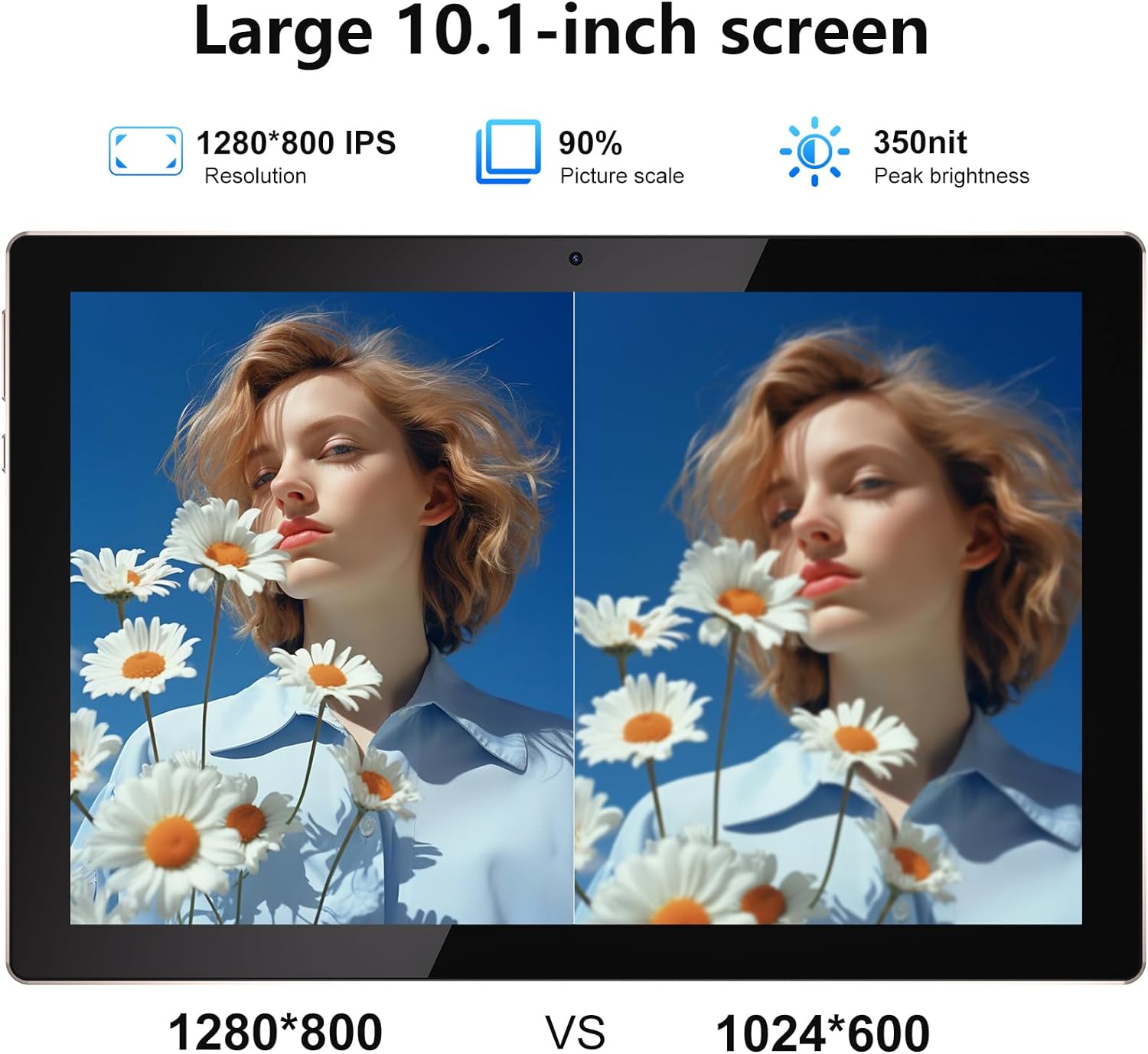 1280 x 800 IPS Screen: The Android tablet equipped with 1280 x 800 IPS screen, 2.5D edged wide-view glass screen with vivid colors, stays clear in any light, offering you a great viewing experience when you watch movies and play games. It is also a good choice to use it for online lessons and doing homework.