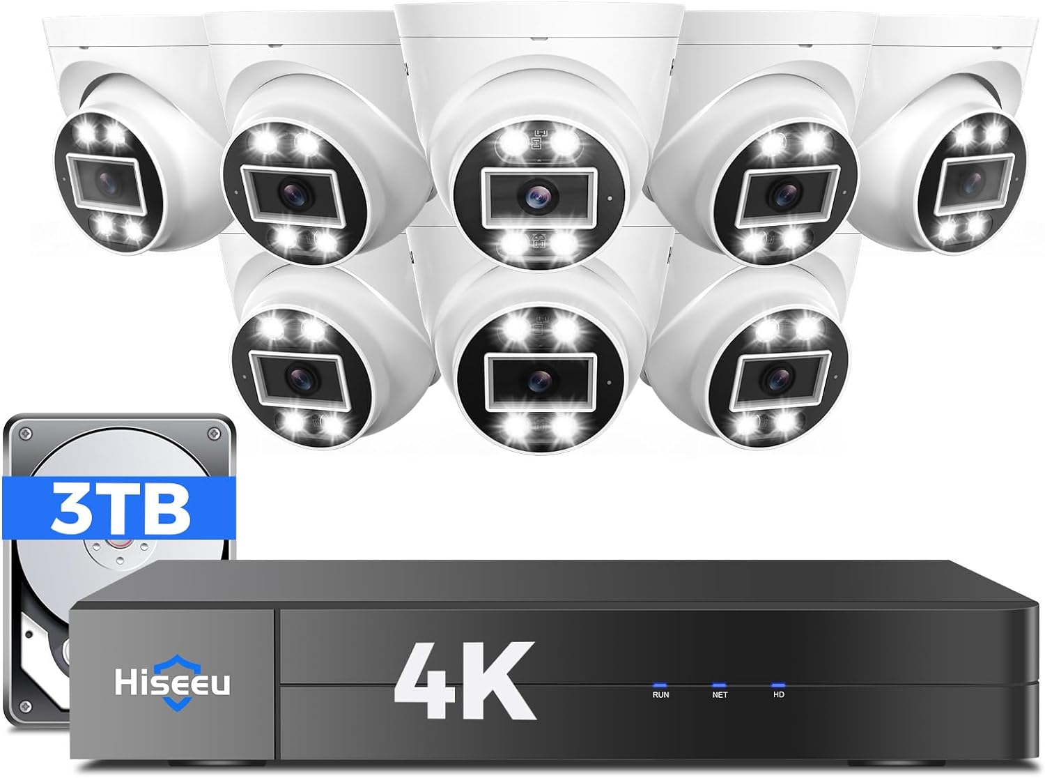 Product Description Hiseeu 4K 16 Channel PoE NVR + 8PCS 5MP Wired IP/POE Security Cameras + 3TB HDD 0 Monthly Fee + Plug and Play + Two-Way Audio + Human Vehicle Detection