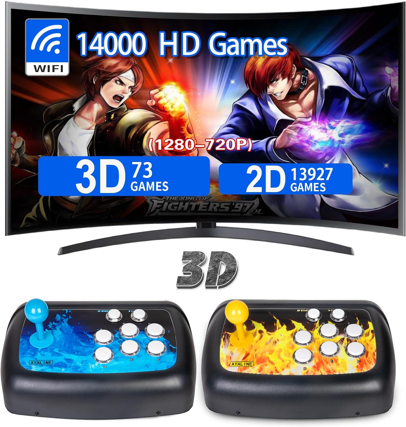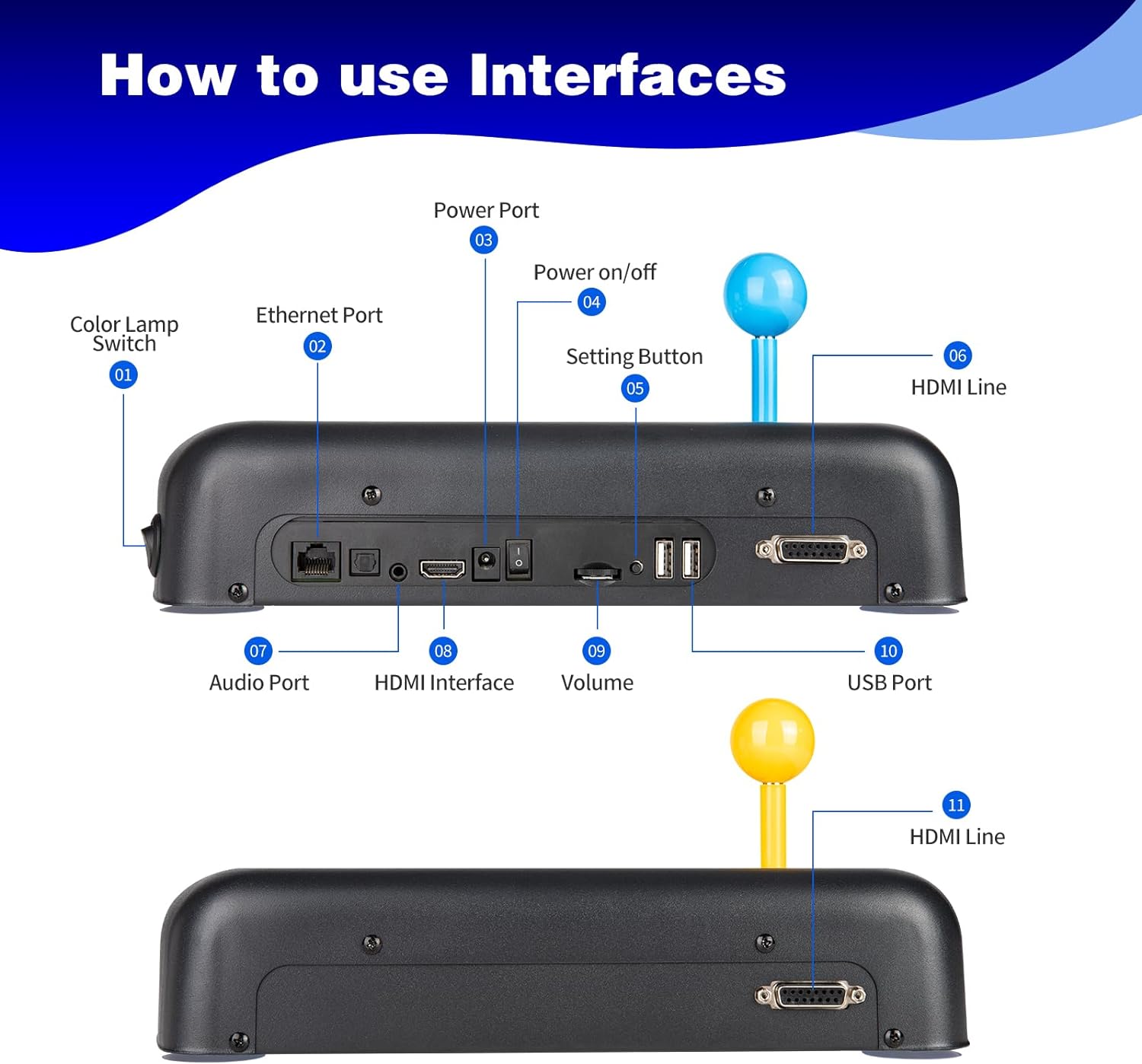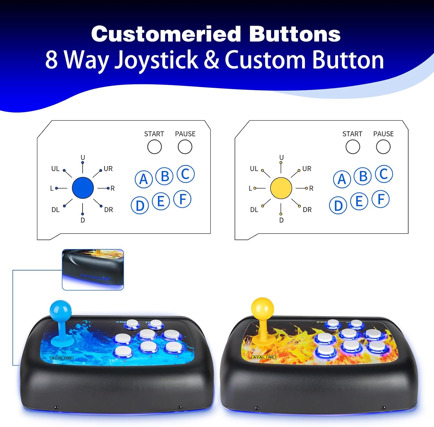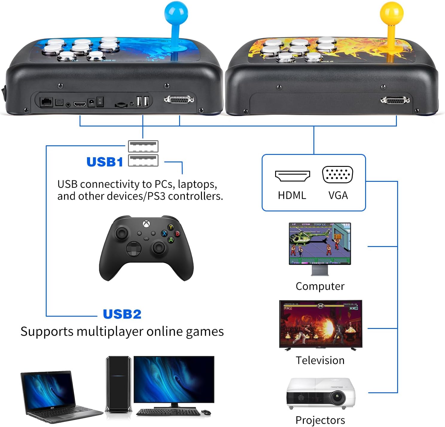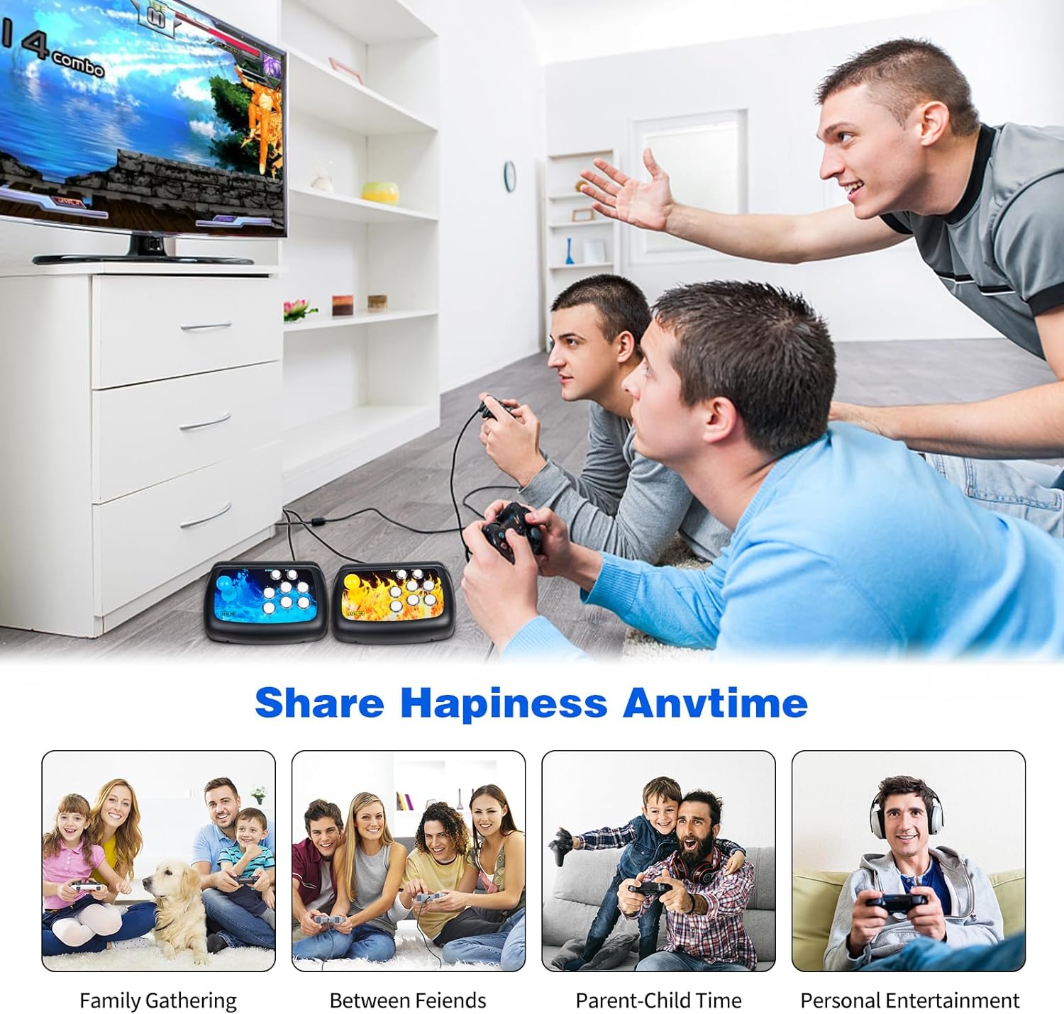 【LED BACKLIT DESIGN】: Our colorful LED backlit acrylic top panel is stylish and durable. The joysticks and buttons are precise and solid. The ultra-slim, all-metal chassis is fan-cooled and has a built-in speaker for an excellent gaming experience. These exclusive features make the Srolli arcade game console the ideal choice, whether for your own entertainment or as a really nice gift for your friends and kids.
