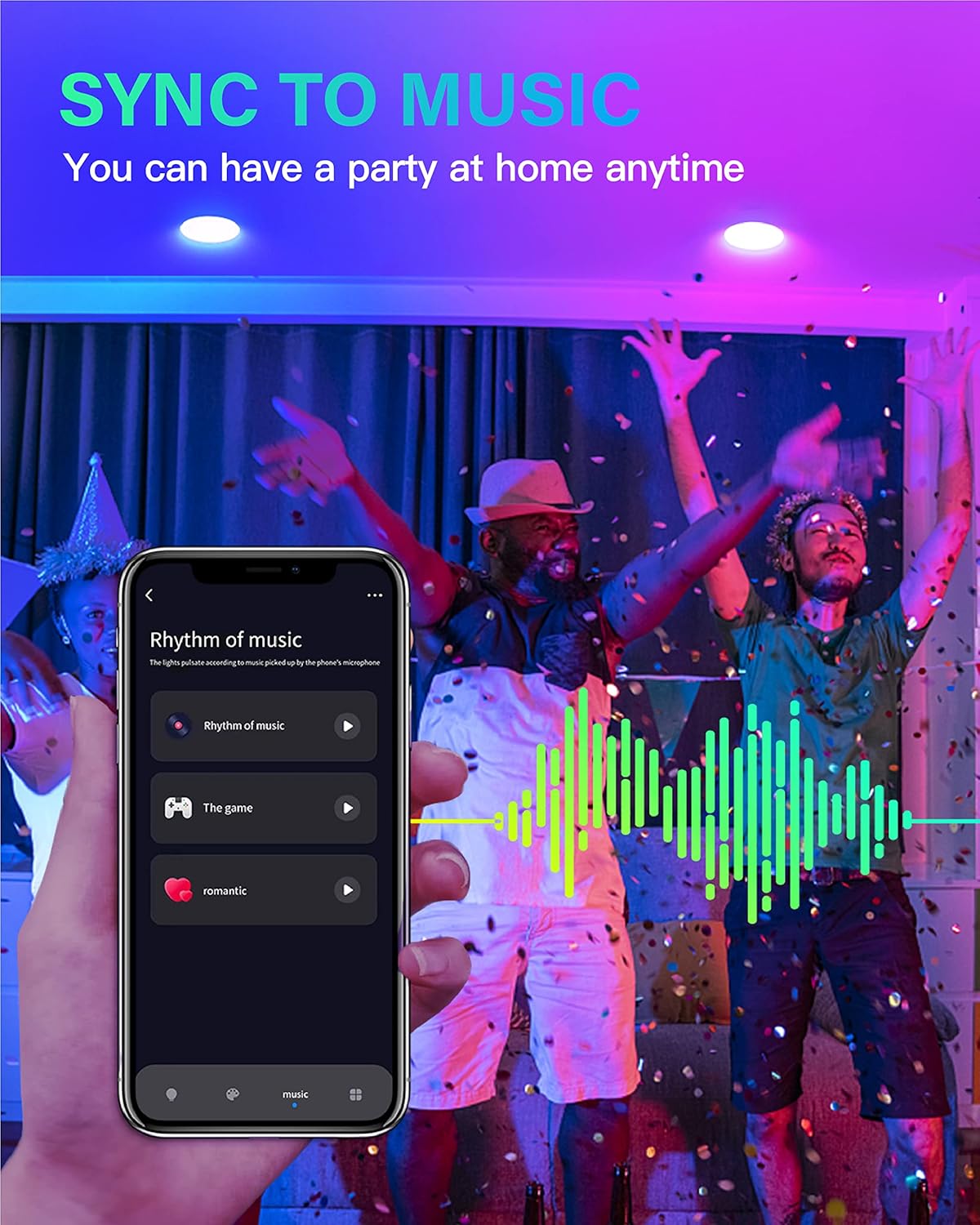 💡【 SNYC music and microphone】 Do you want to have a music party at home? Then use this smart roof light, you can change the color of the light according to the rhythm of music, so that you can also enjoy the fun of the music party at home.