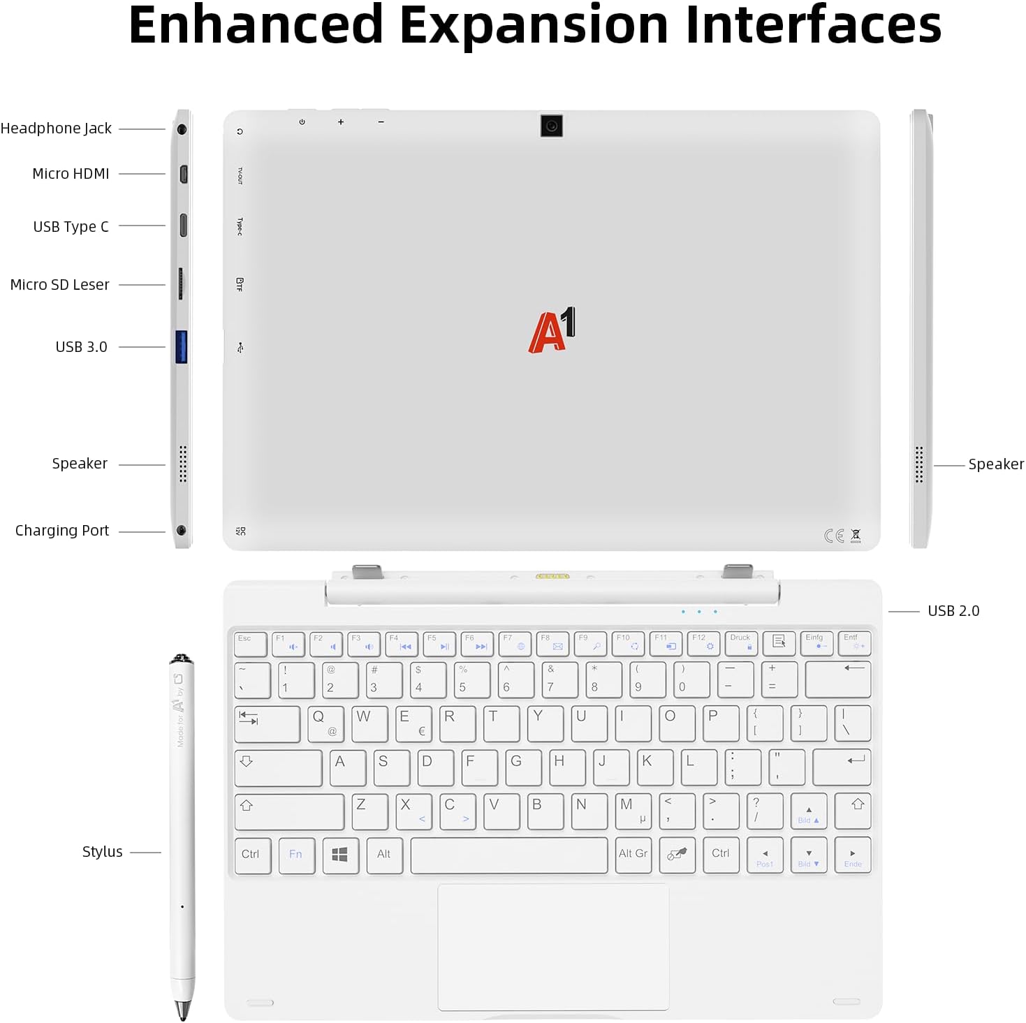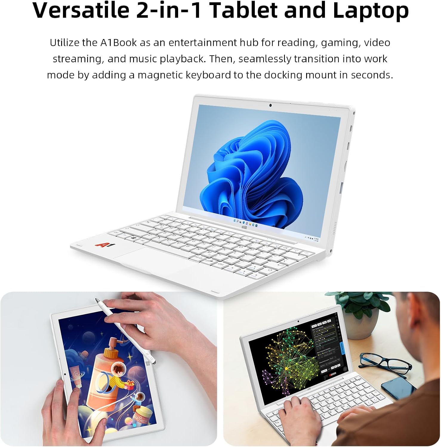 Laptop and tablet can be switched freely: The A1 is a multi-functional device that can be used as a laptop or tablet. It has a detachable keyboard. When the keyboard is installed, it becomes a laptop. When the keyboard is removed, it can be used as a tablet. You can switch it at will according to your work needs.
