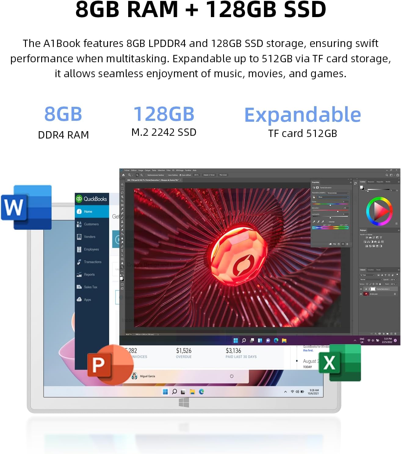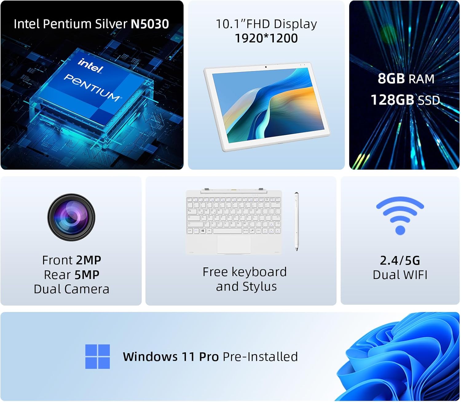 Powerful Performance: The A1 is equipped with an Intel Pentium N5030 processor (4C/4T, up to 3.10GHz, TDP 6W), 8GB DDR4 RAM and 128GB high-speed SSD, providing you with ultra-fast performance and ample storage space. Ensure efficient multitasking. It has a built-in large-capacity 7600hAm/28.12Wh battery, so you no longer have to worry about battery life.