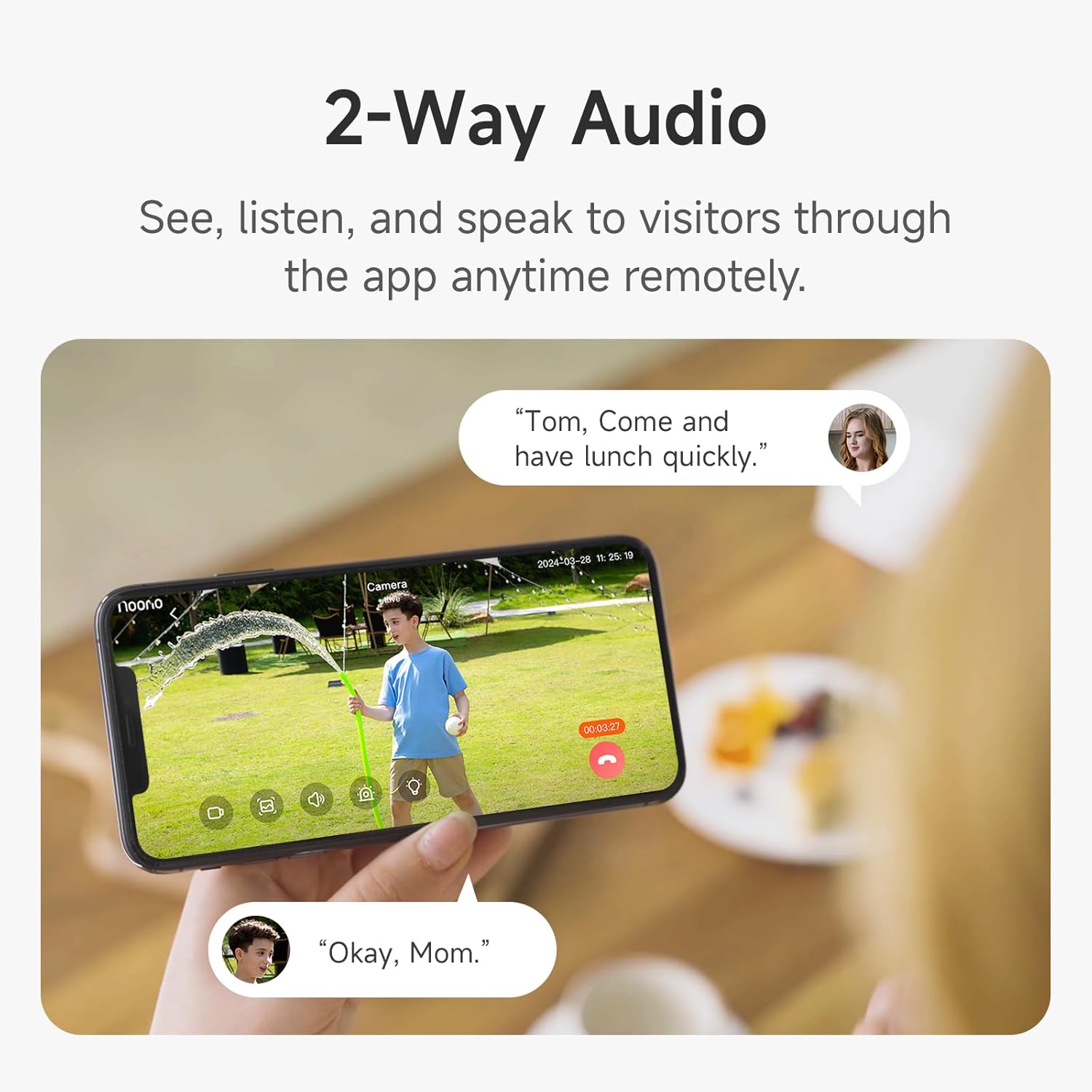 Advanced AI detection+Pir Motion Sensor: Noorio Security Outdoor Outdoor Camera Movement Sensors Incorpted Pir and Vanguardia technology designed to recognize human bodies intelligently, minimizing false alarms. Customizable movement areas allow you to choose where you detect your wireless outdoor security chamber and what you want to detect.