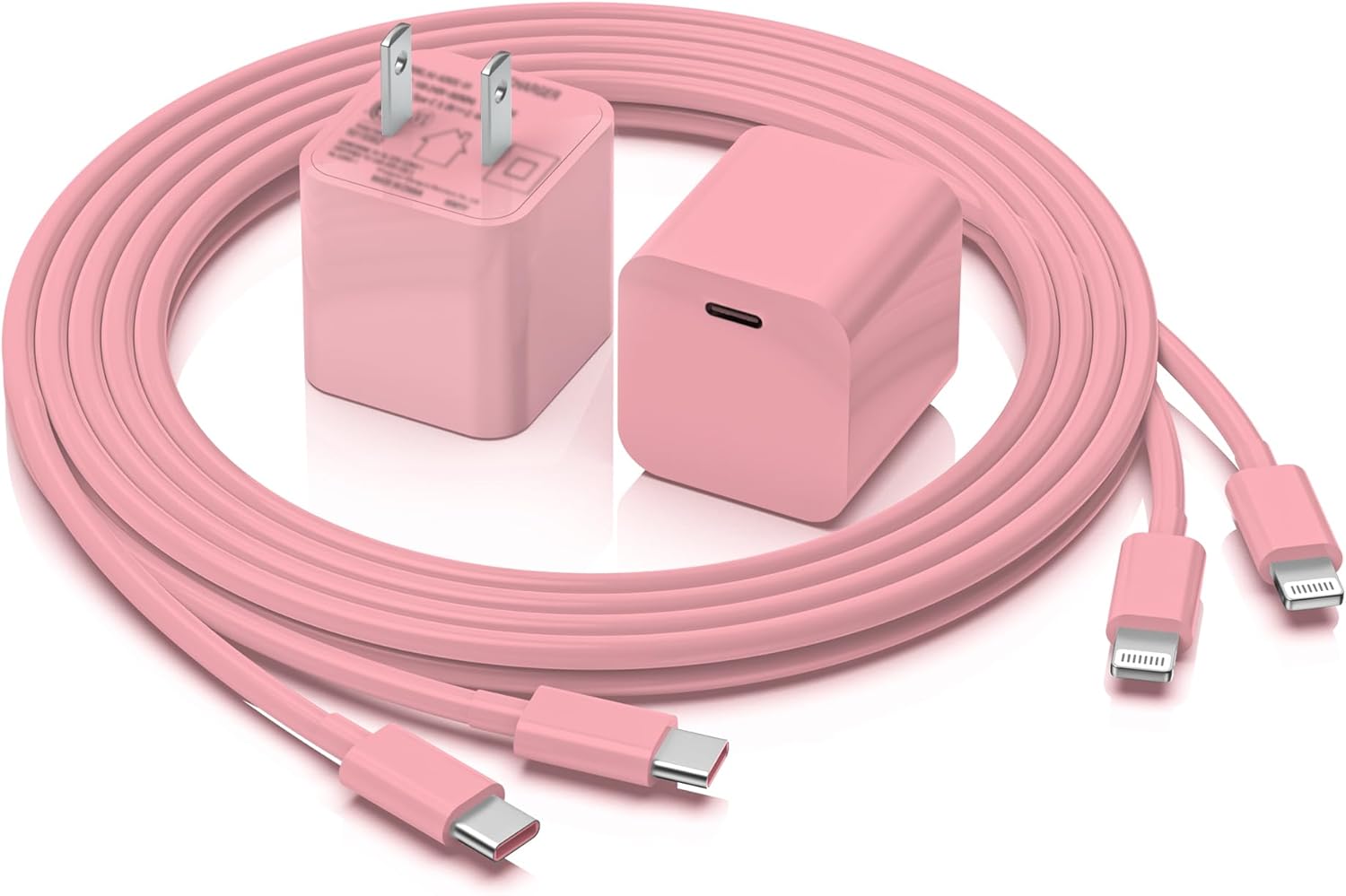 What You Get (4 Pack): 2 Pack USB C PD Wall Charger and 2 Pack 10ft USB-C Lightning Cable. This PD wall charger and Lightning USB-C cable fast charger certified by ETL, FCC, CE, ROHS. It is safe to use this PD adapter, wall charger and USB-C Lightning cable to charge your iPhone/ipad/airpods. 1 year replacement warranty. If you have any concerns, please do not hesitate to contact us! We promise to solve your problems within 12 hours!
