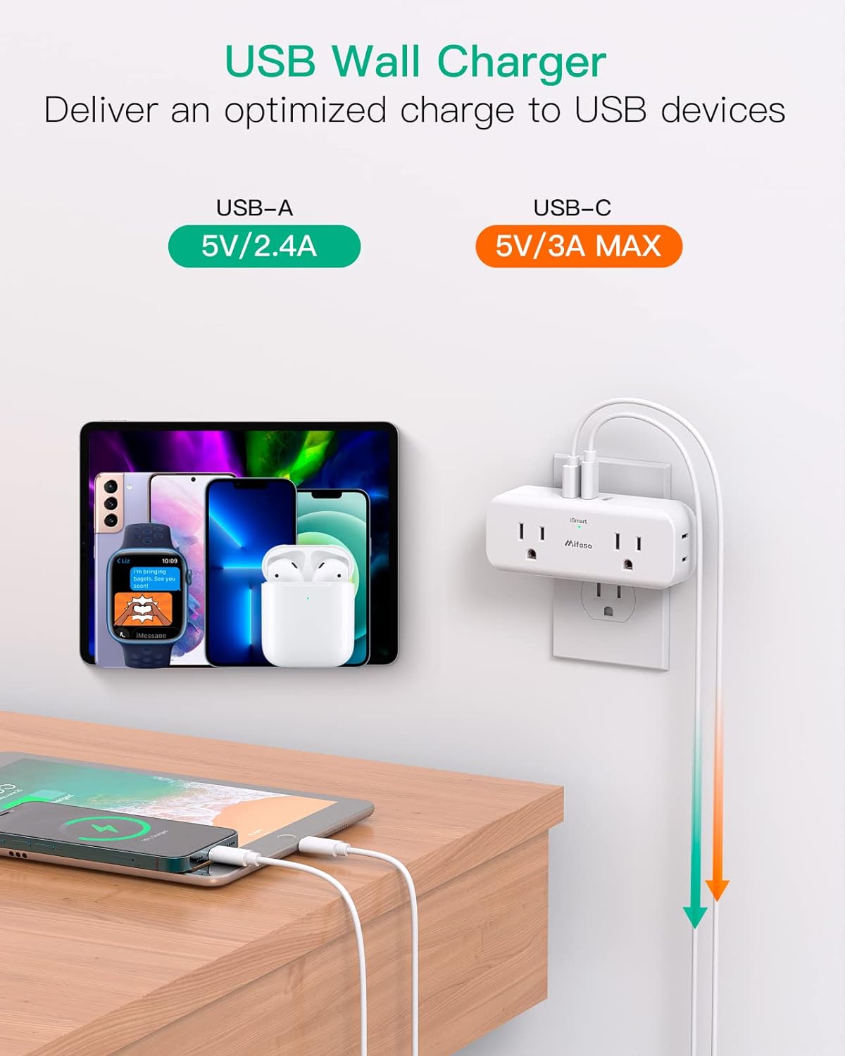 【Fast & Smart USB Charging】- Built-in smart charging technology detects and delivers the fastest possible charging speed up to 5V/2.4A per port, USB-C up to 3A, ideal for phones, tablets, iPads, etc. NO additional charger needed.