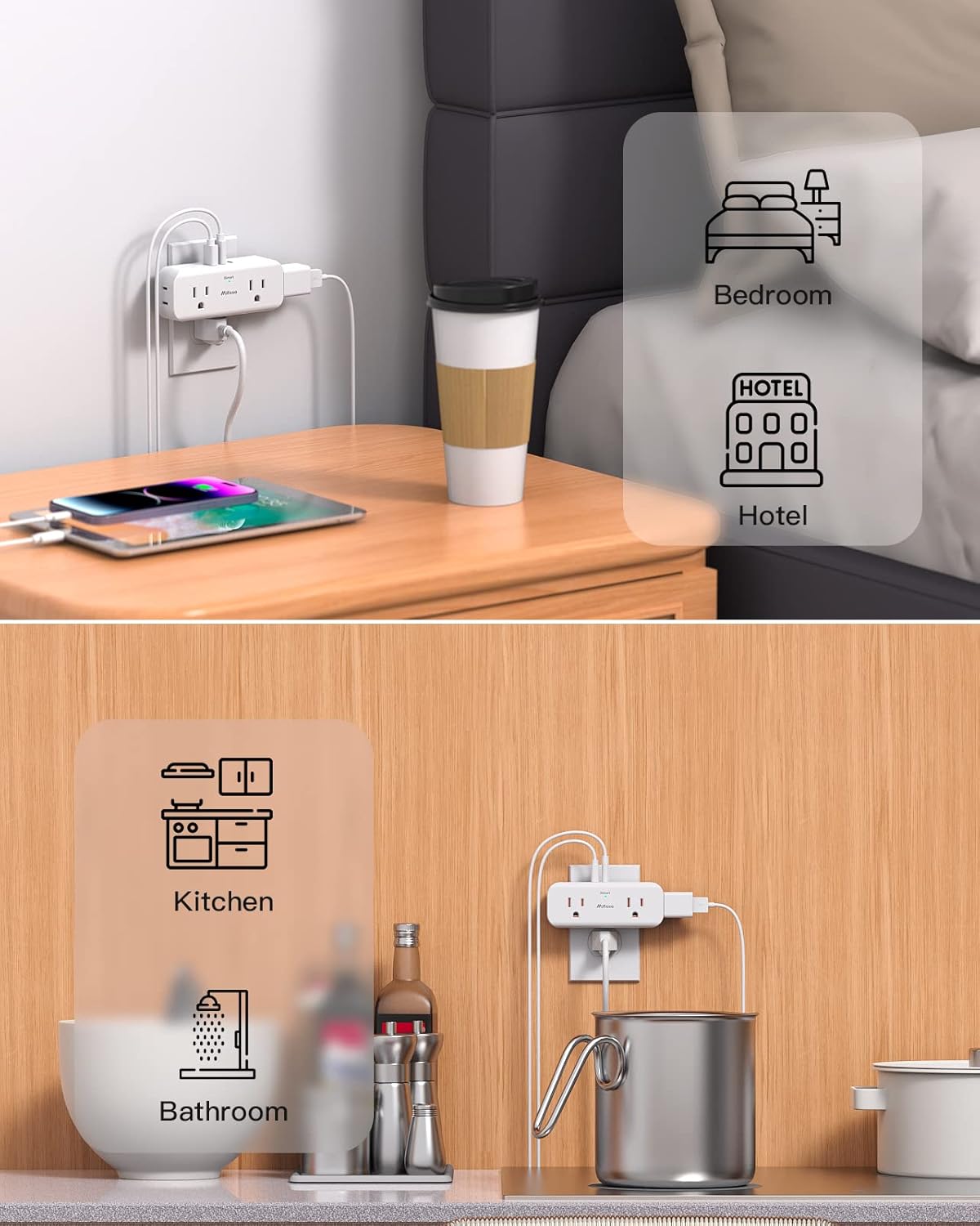 【Compact Travel Size】- This outlet splitter is mini size: 3.0 x 2.4 x 1.6 inches, compact and lightweight for easy travel and packing.