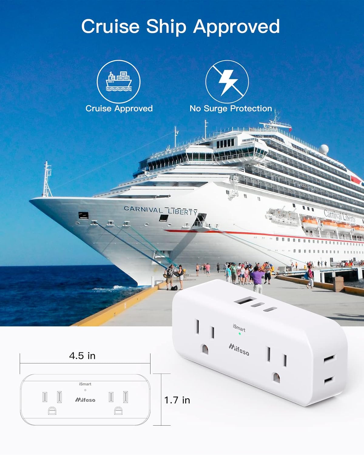 【Must-Have Cruise Accessories】- No surge protector or extension cord to meet all cruise requirements and major cruise lines.