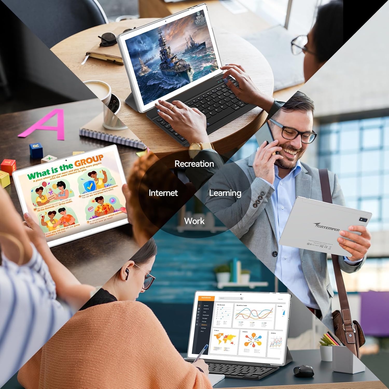 [2024 New Upgraded Android 13] The new updated ANTEMPER Android 13 tablet with an updated settings interface provides user privacy protection to ensure greater security. With Google GMS certified Android 13, you can access and download more of your favorite apps from Google Play. In PC mode, you can view apps, manage multi-function windows, and customize icons on a split screen for a simpler, smoother experience.