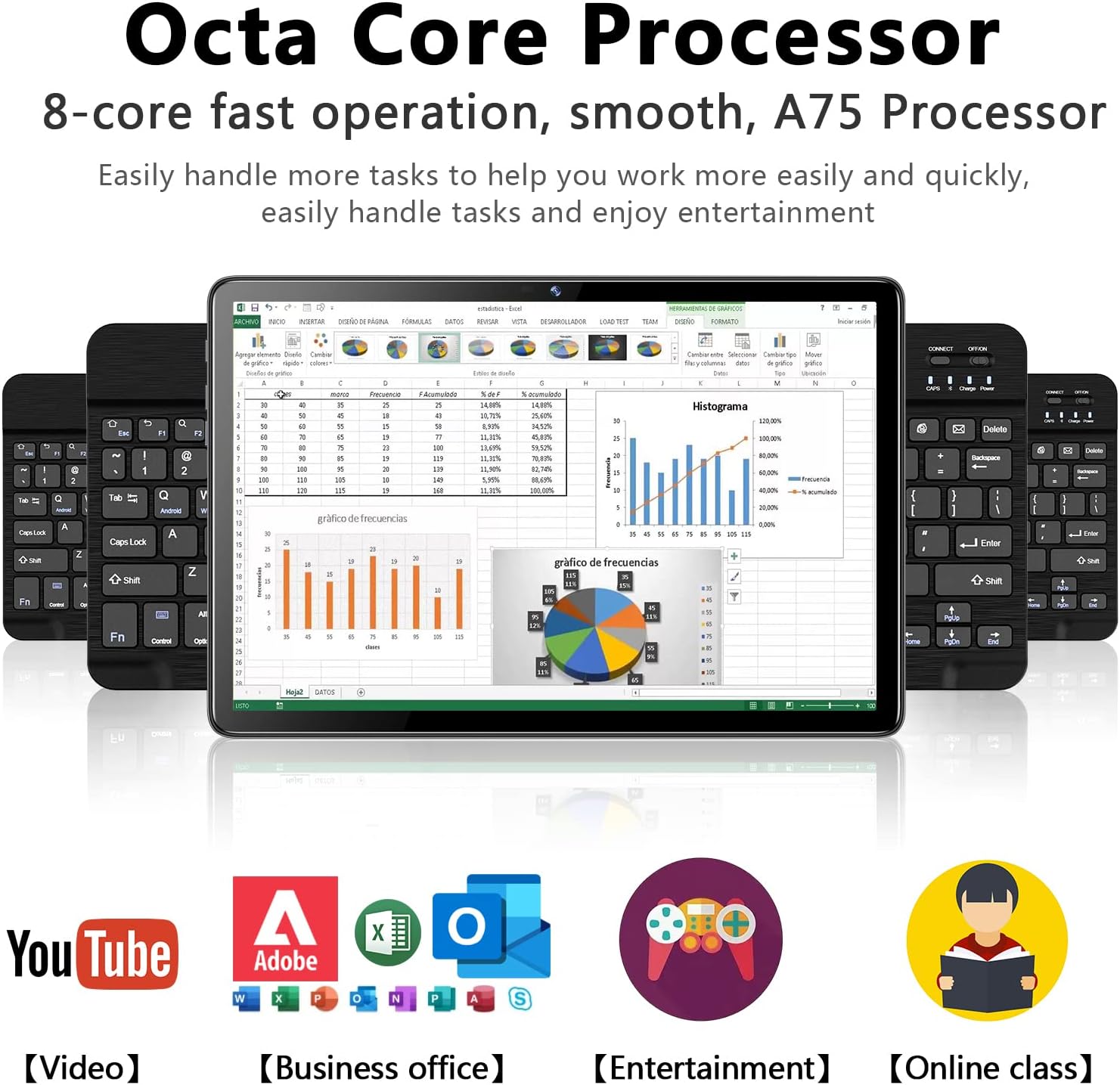 💻【Upgraded CPU to Powerful Performance】ZONKO 10.1 inch tablet is powered by 12nm 2.0Ghz Octa-Core T610 CPU processor, which maintains smoother video performance, it is designed to perform multiple tasks, making it easy to switch between different applications.