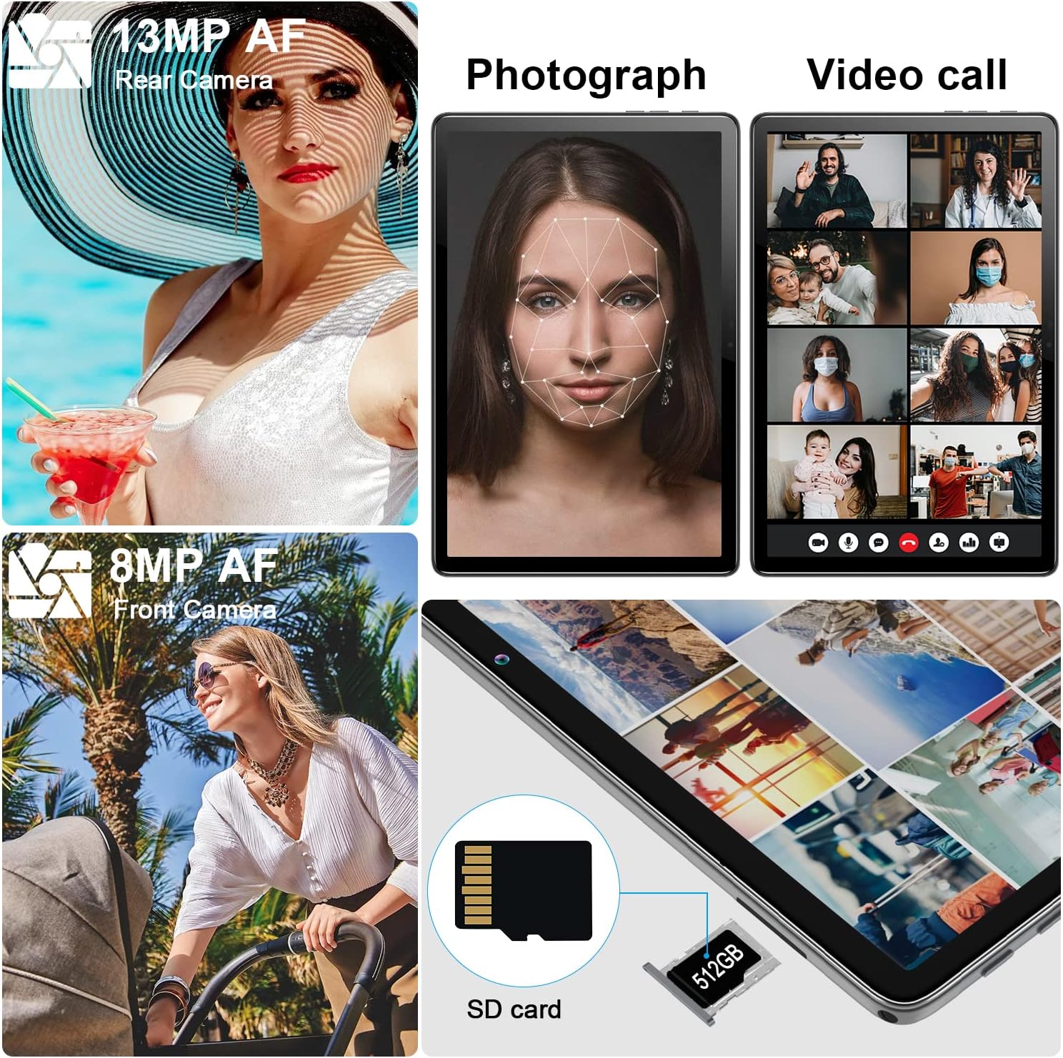💻【Upgraded Storage to 128GB】This tablet comes with 4GB RAM plus 128GB internal storage, can be expanded up to 512GB (maximum to 1TB) via external TF/SD card. The Android tablet allows you to download Android apps, songs, photos or movies, without worrying about keeping all the data, files and games.