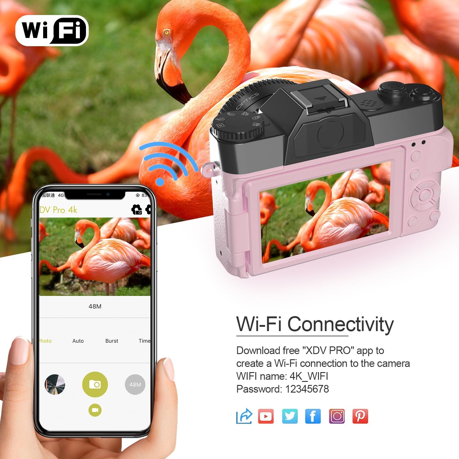 【Cheap Digital Camera with WiFi】: WiFi function allows each shot to be transferred wirelessly to your smartphone or tablet for sharing, editing with photo apps, or uploading to your favorite sites. You can even use this app to control your camera remotely.
