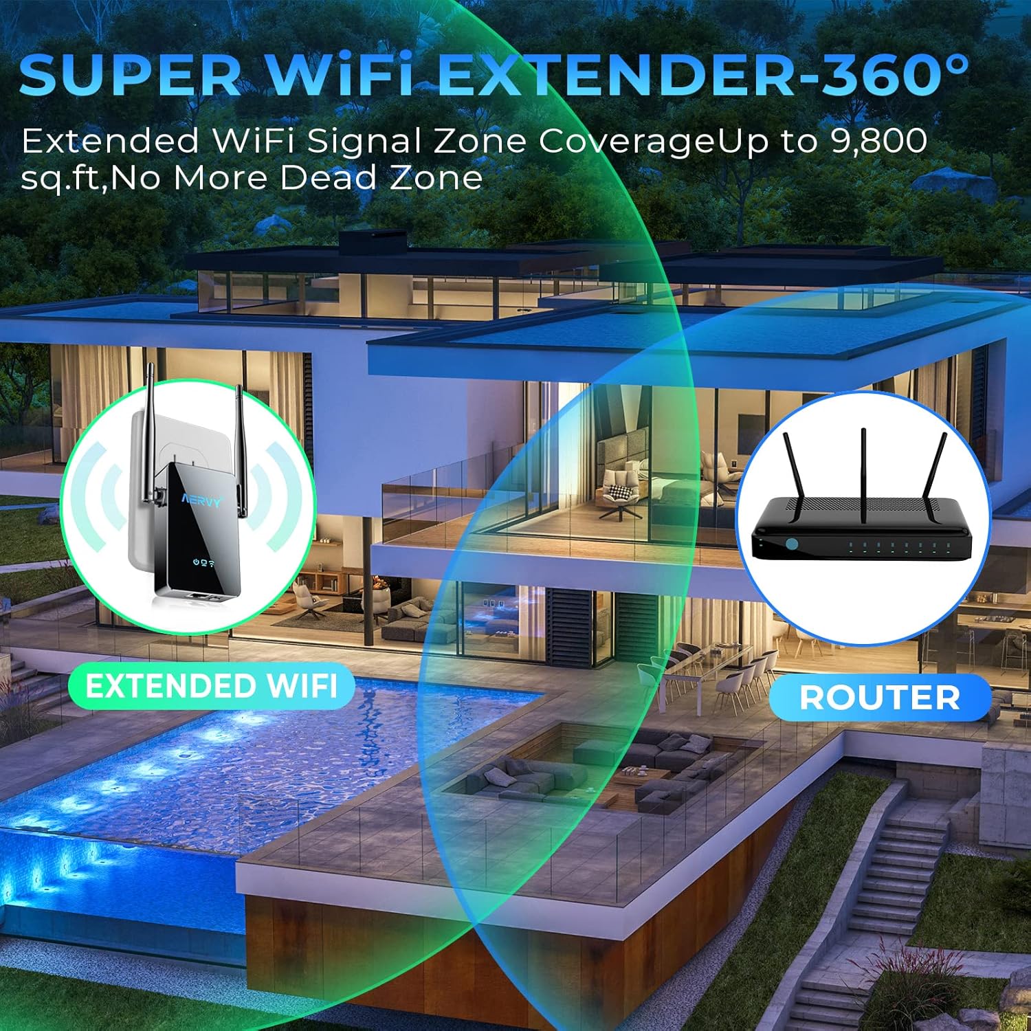 – Ultra-fast Internet Speeds: WiFi Booster single band technology with the newest Wi-Fi technology chipset processors for 2.4GHz, boosts internet speed over great distances up to 9,800 square feet, with super speeds up to 300Mbps.