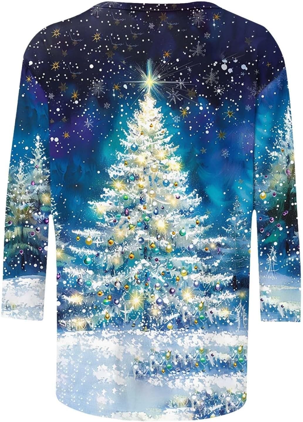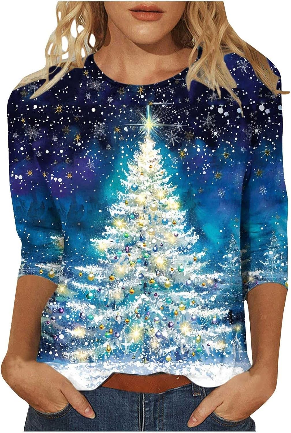 2024 Women's Christmas Shirts Wine Glass Print 3/4 Sleeve…