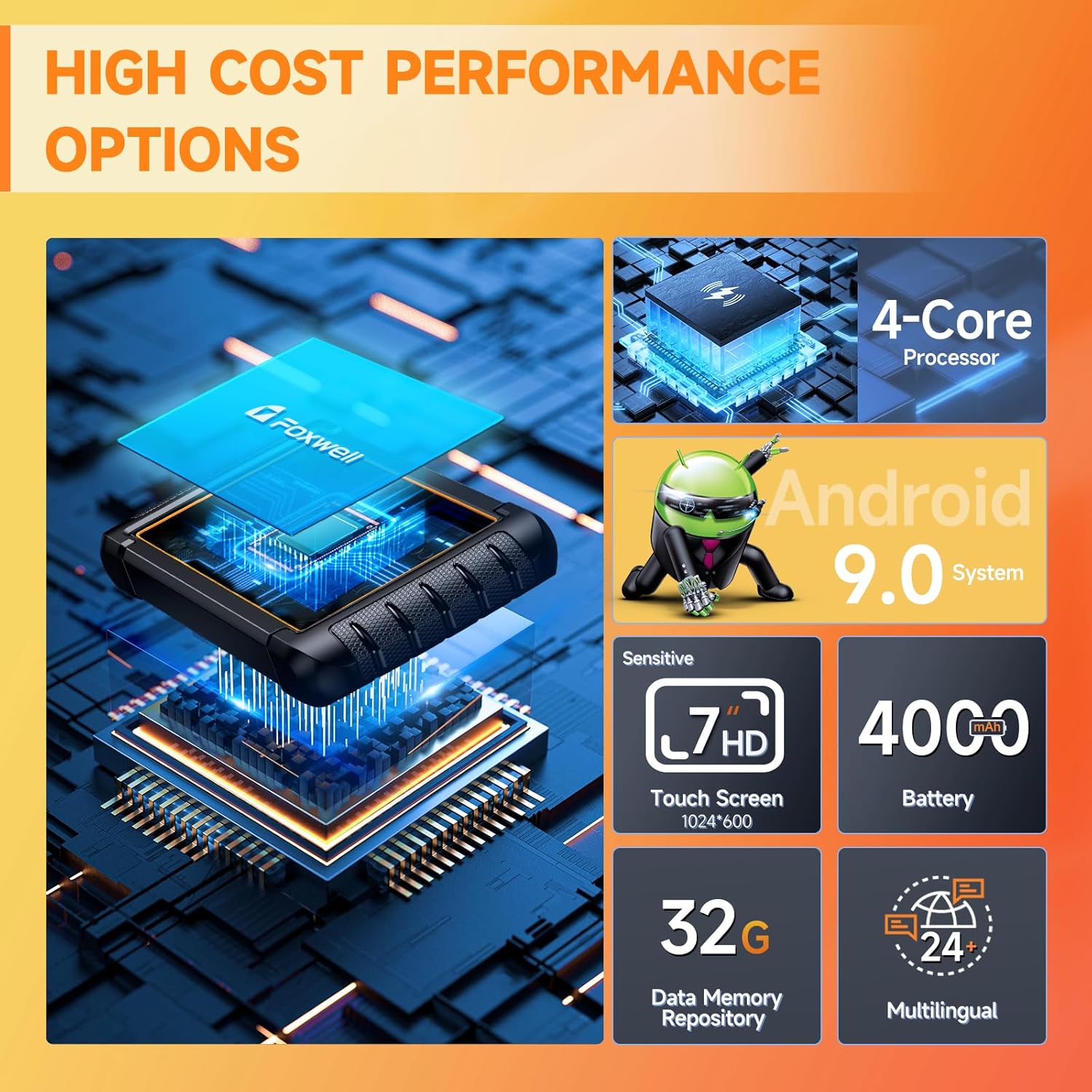 Easy to use: Simple operation interface that can be used on the touch screen even when wearing gloves. The 4in1 data flow screen interface allows you to obtain key information from multiple perspectives. Highway allows devices to perform tedious search steps automatically, saving time. The resistant grip to scratches and flat support on the back are convenient for use on any occasion. The diagnosis of wireless bluetooth of 65,611 feet allows you to get rid of tangled cables and move freely.