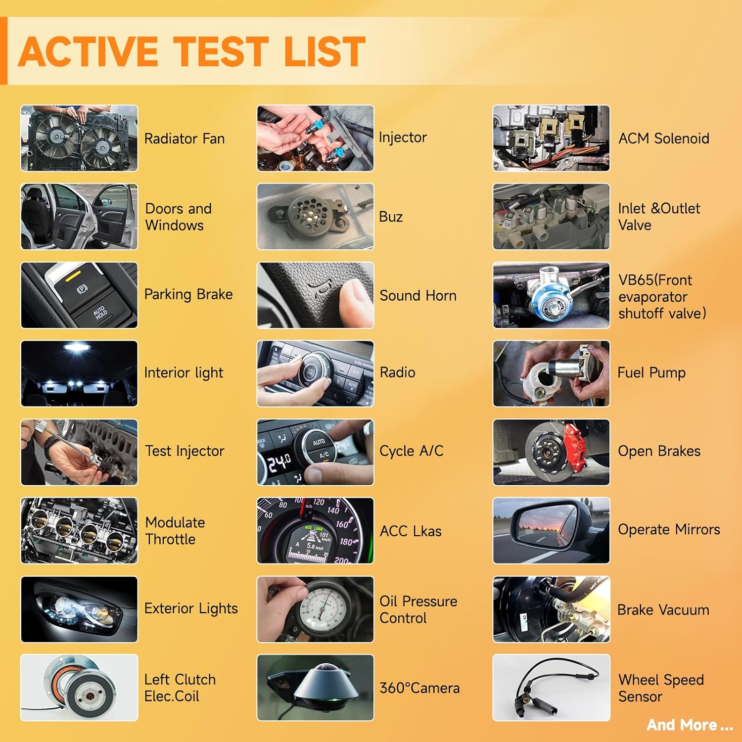 Professional bidirectional scan tool: the active test is widely equipped for car subsystems to help you directly access the car's ECU to verify the work status and functionality, which allows you to locate the fault parts with greater precision. Including fuel injectors, refrigerant pumps, windows, windshield wiper …… 809BT admits 24 language switches and more than 108 models, as well as 10000+cars. It also admits the impression of multidimensional diagnostic reports, making clear the state of the car at a glance.