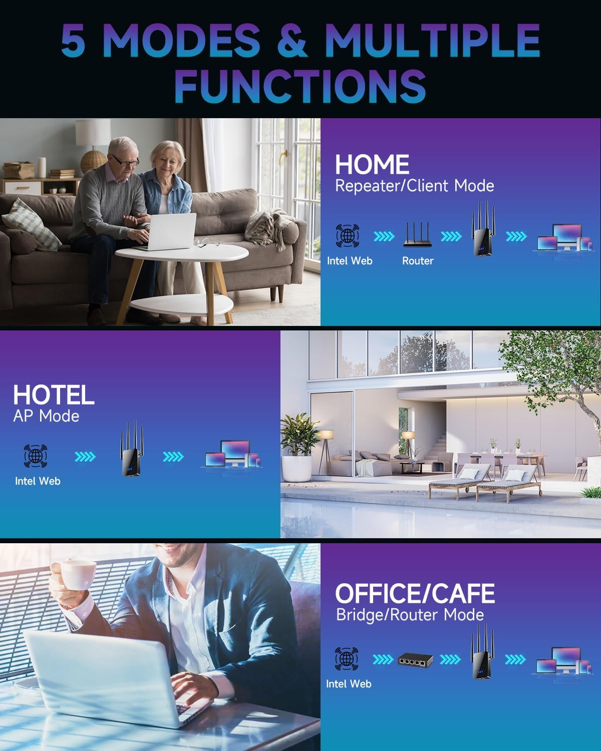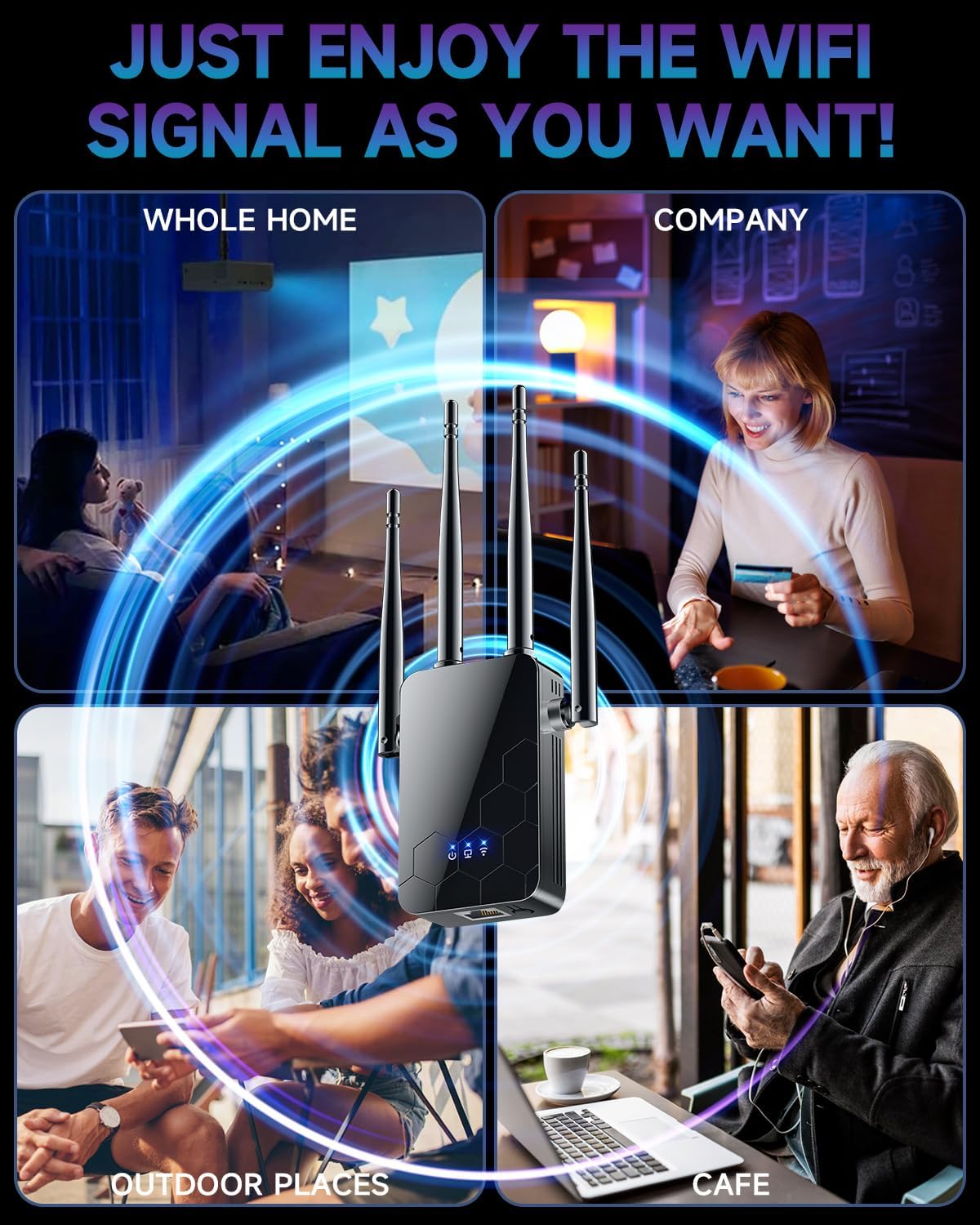Updated security features: Easily connect all router brands to extend wireless internet. Complete the WPA/WPA2 protocols ensure the safety, detection and internet AVIX risks of the Internet in real time, keep your Wi -Fi stable and safe. Ideal for home, company and travel in use