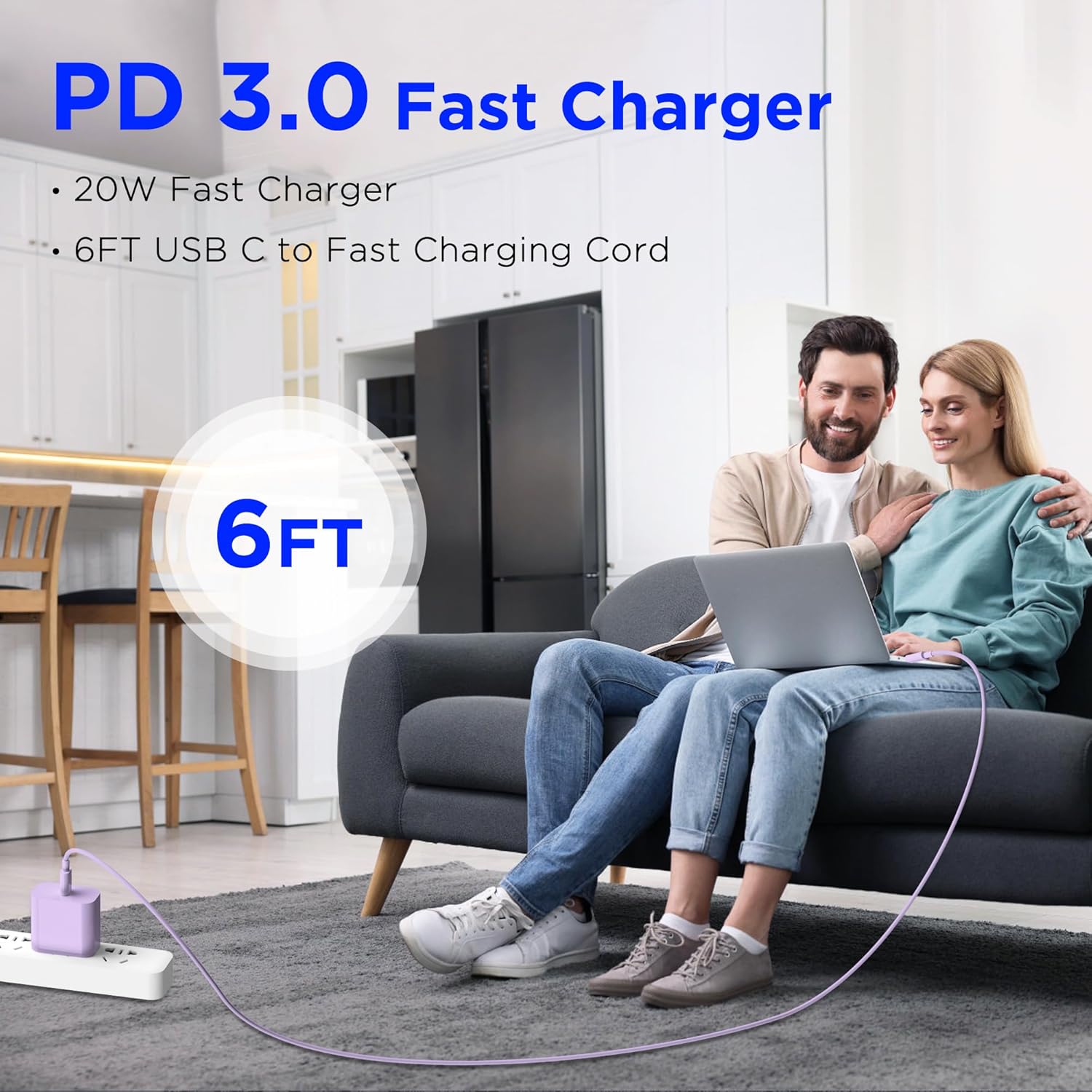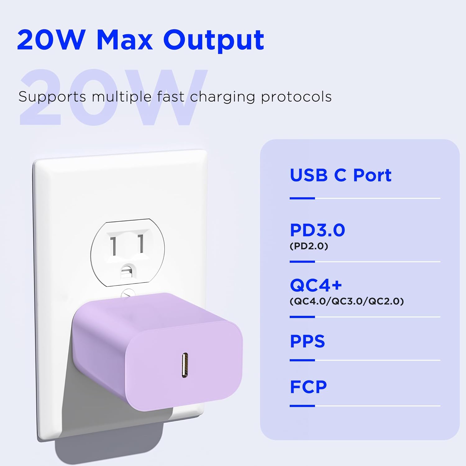 【iPhone 16/15 Fast Charging】The 20W USB C charging block and charging cable are equipped with smart chips, which can quickly charge the new iPhone, fully charge your iPhone 15 Pro Max from 0% to 30% in only 30 minutes, 3 times. Faster than standard USB charger.