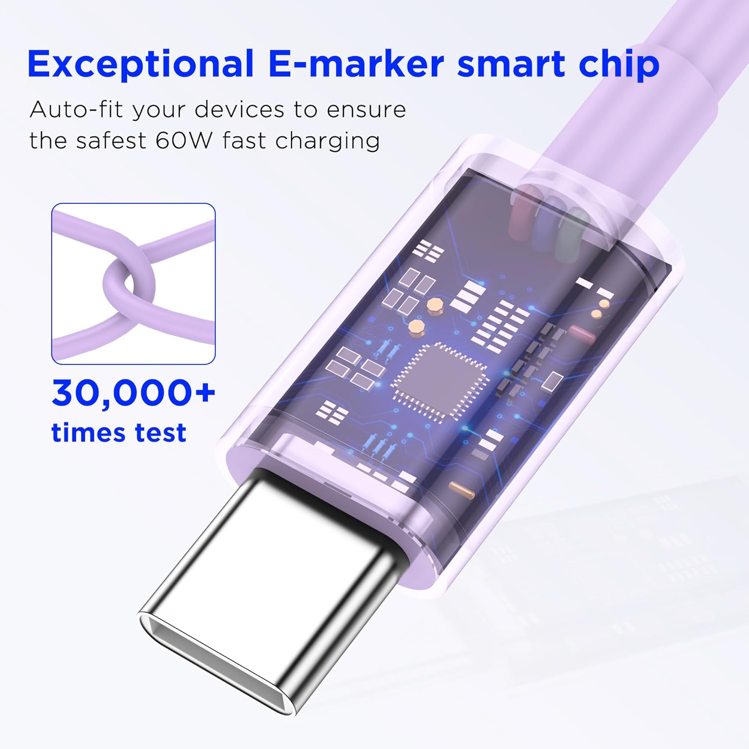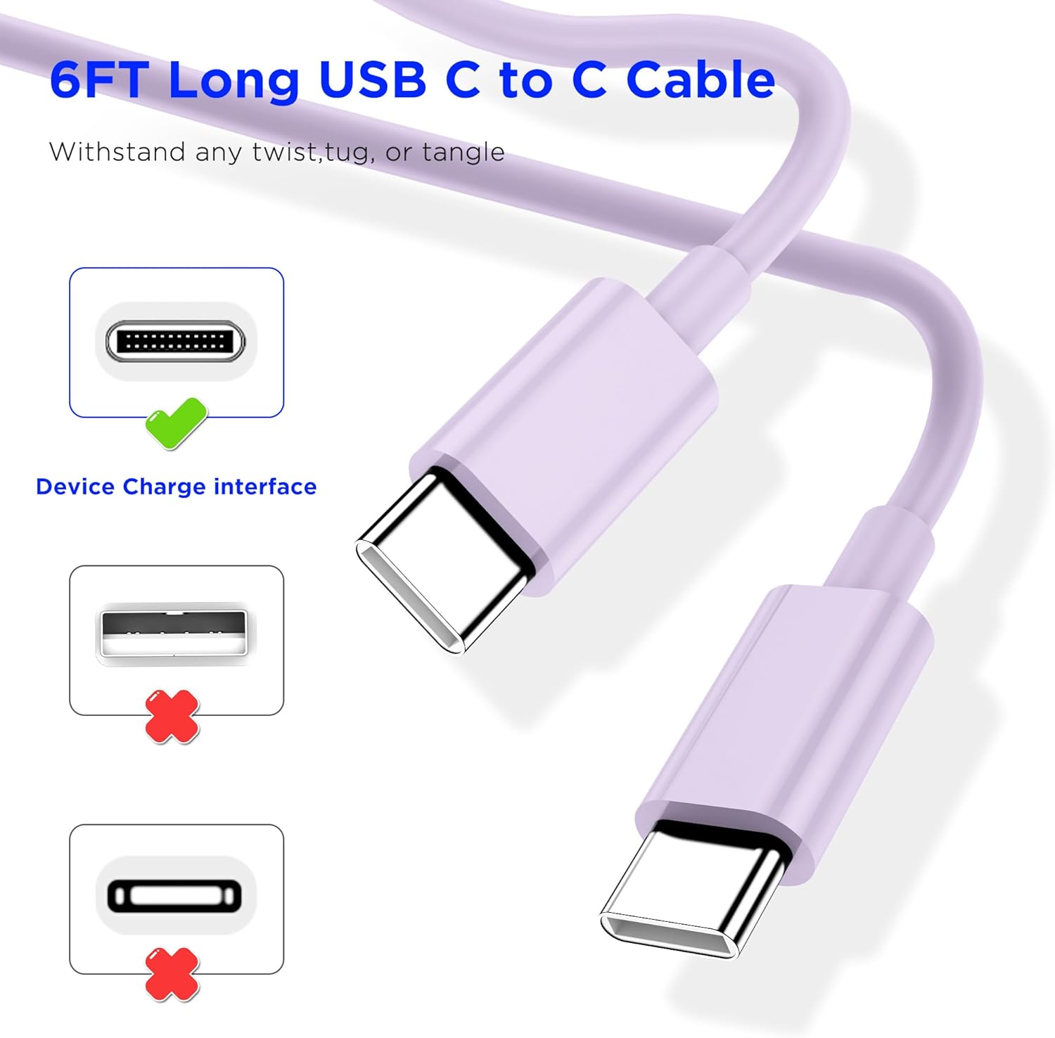 【60W USB C to USB C Cable】: This type C to type C supports PD 3.0 fast charging, up to 20V/3A (maximum) using a USB-C power adapter (e.g. 18W/30W /45W/60W). Fast charging allows you to charge your device up to 80% in 30 minutes. Supports data transfer up to 480Mbps while charging.