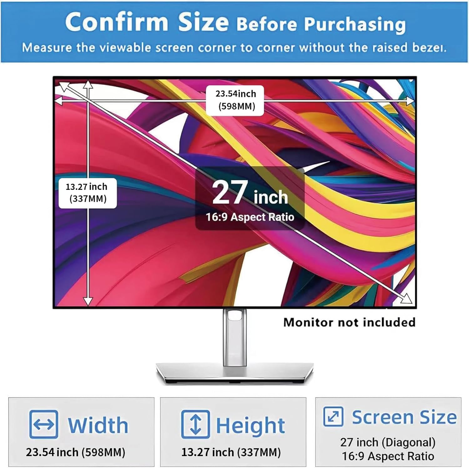 【Improved privacy protection】 The 27 -inch privacy screen filter provides a clear view. After applying the anti-peeping movie, only the user who faces the screen can see the content on the screen. If seen from the side or back, the content on the screen will become blurred or completely invisible. In this way, either in public or in the office, an anti-peppered film of the 27-inch PC privacy screen can help you protect your privacy and prevent others from looking out the content of the screen.