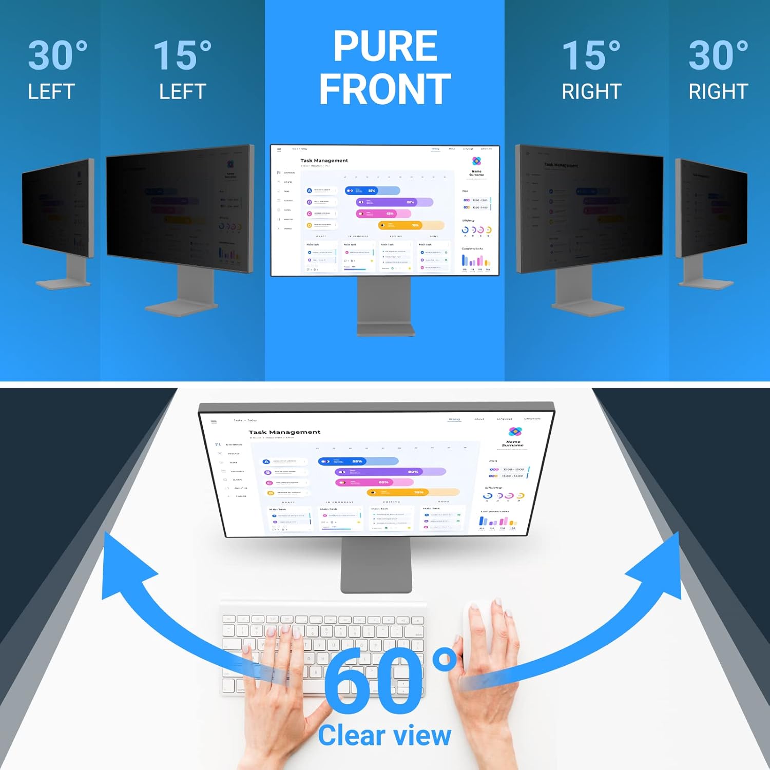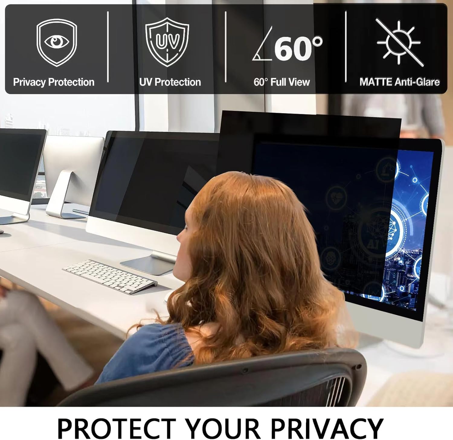 【Eye protection】 Privacy screen of the computer screen with matt finish avoids the glow and softens the hard light, by blocking 95% of the reflected light, filtering 65% of the blue light and 96% of the UV rays, the privacy screen filter can help you protect privacy, reduce ocular fatigue and extend the useful life of your screen.