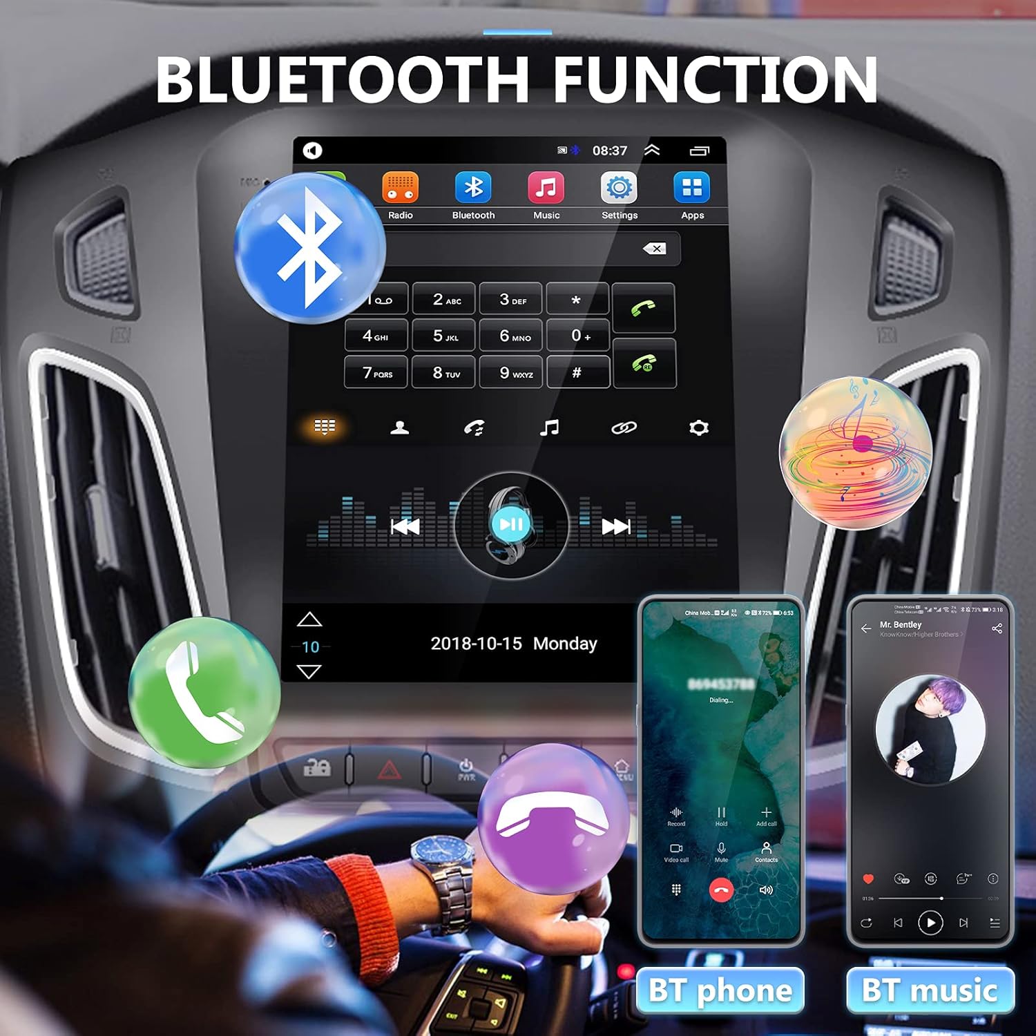 5. Bluetooth Car stereo with FM radio: Touch screen car for 2017 Ford Focus Bluetooth built with A2DP, admits hands -free calls, Bluetooth music, automatic automatic automatic load automatic load, allowing an easy preparation of smartphones, a transparent microphone incorporated and equipped with an external microphone.