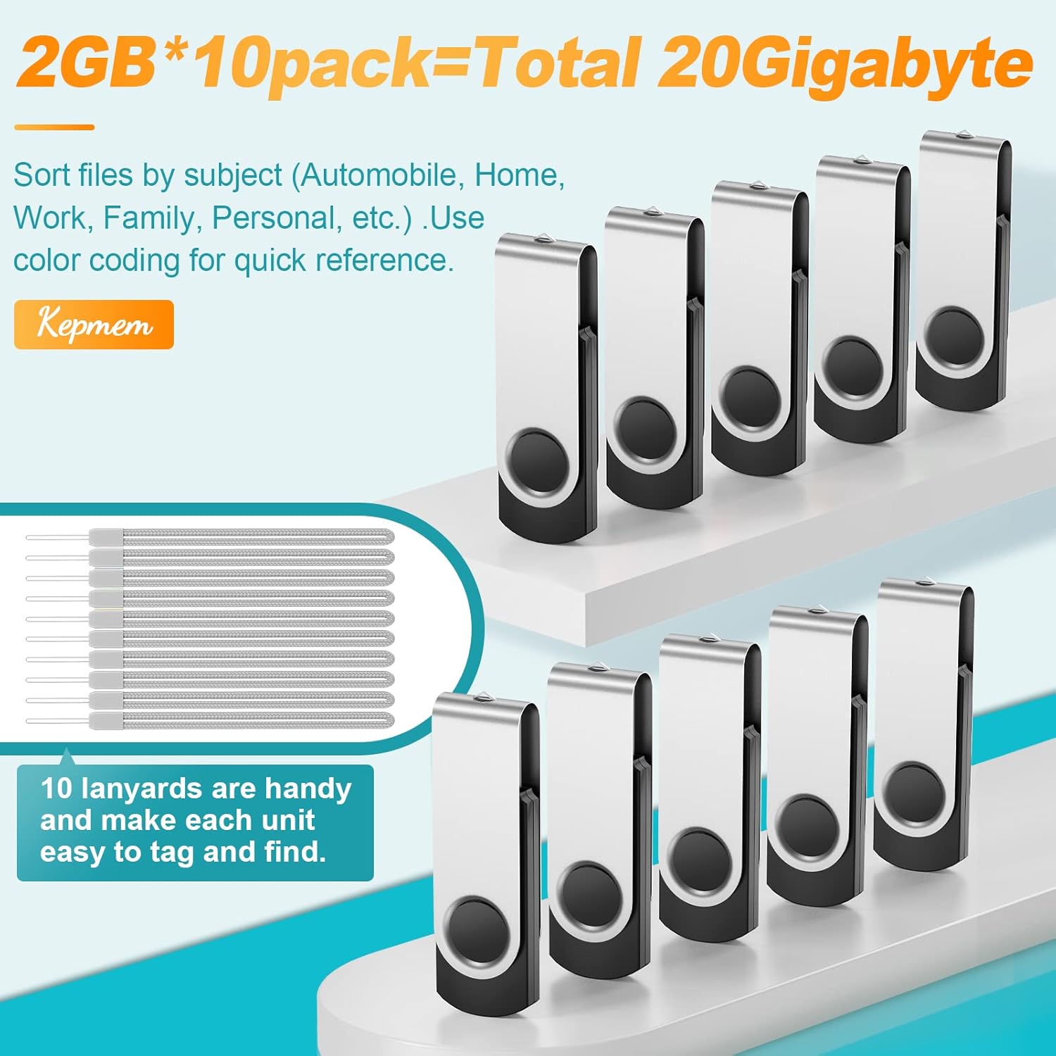 📢【20GB Total Capacity】Including 10 pack 2GB silver USB flash drives, 20GB in total. With 10 free lanyards for the USB drive to be carried conveniently. Different flash drives can help you store different files. Easy to identify. 🔺The standard system is FAT32 system. Reformatting method: connect to computer – click bottom right and select format – click start – done. It is recommended to format the drives as exFAT or NTFS when transferring files larger than 4GB.