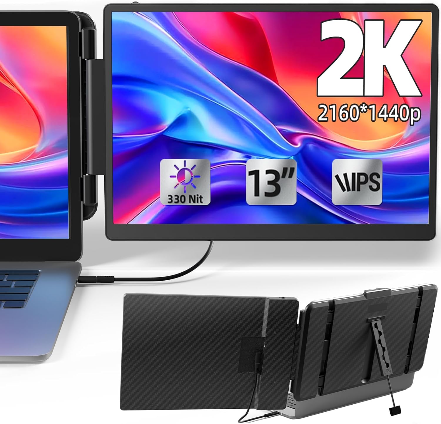 2K Laptop Monitor Extender – 13″ IPS 1440P Dual Monitor Adapter…
