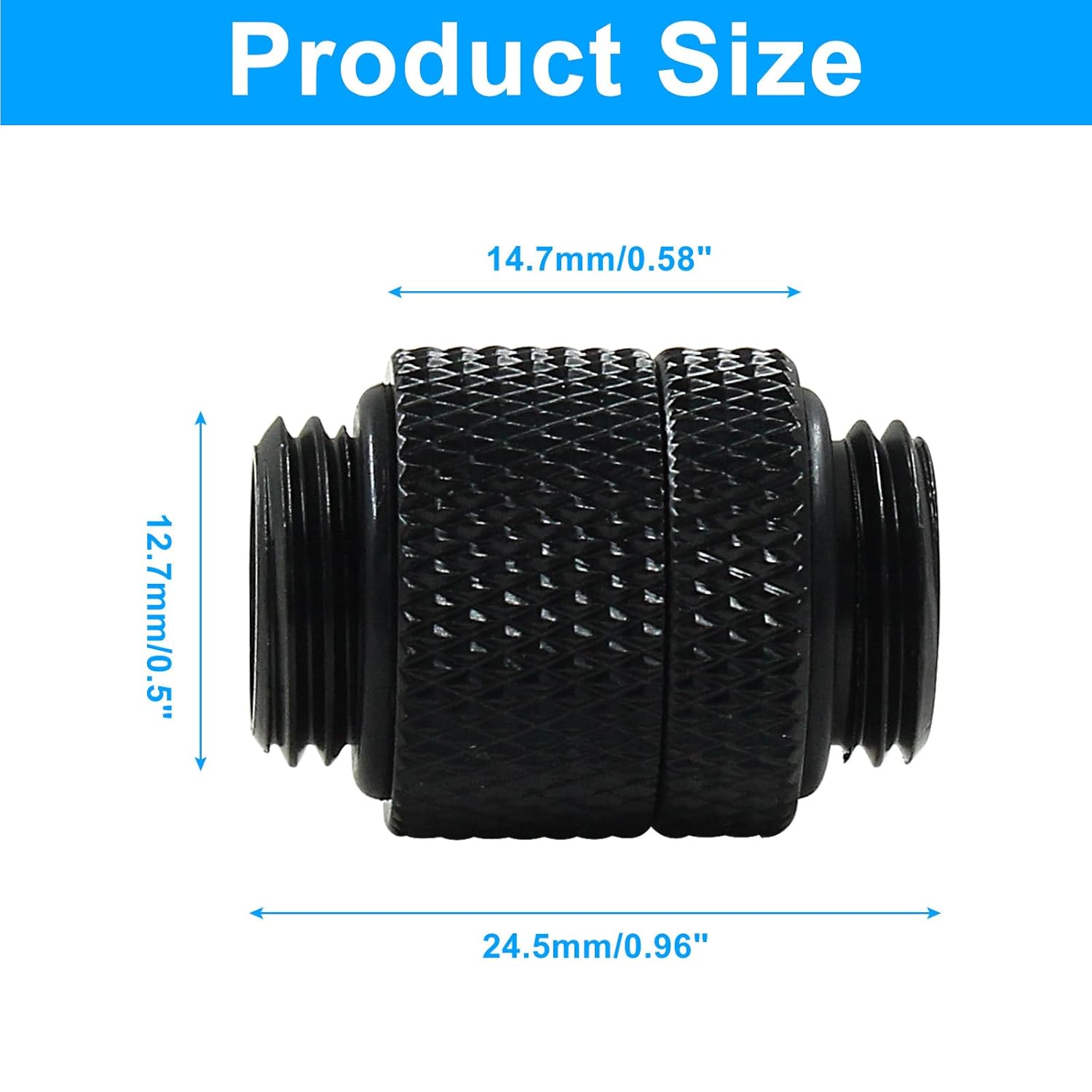 Product size: thread size: G1/4 “, Total length: 24.5 mm/0.96” twisted section of the hand of the medium hand: 14.7 mm/0.58 “, port diameter: 12.7 mm/0.5”. Characteristics: 360 degrees can be rotated.