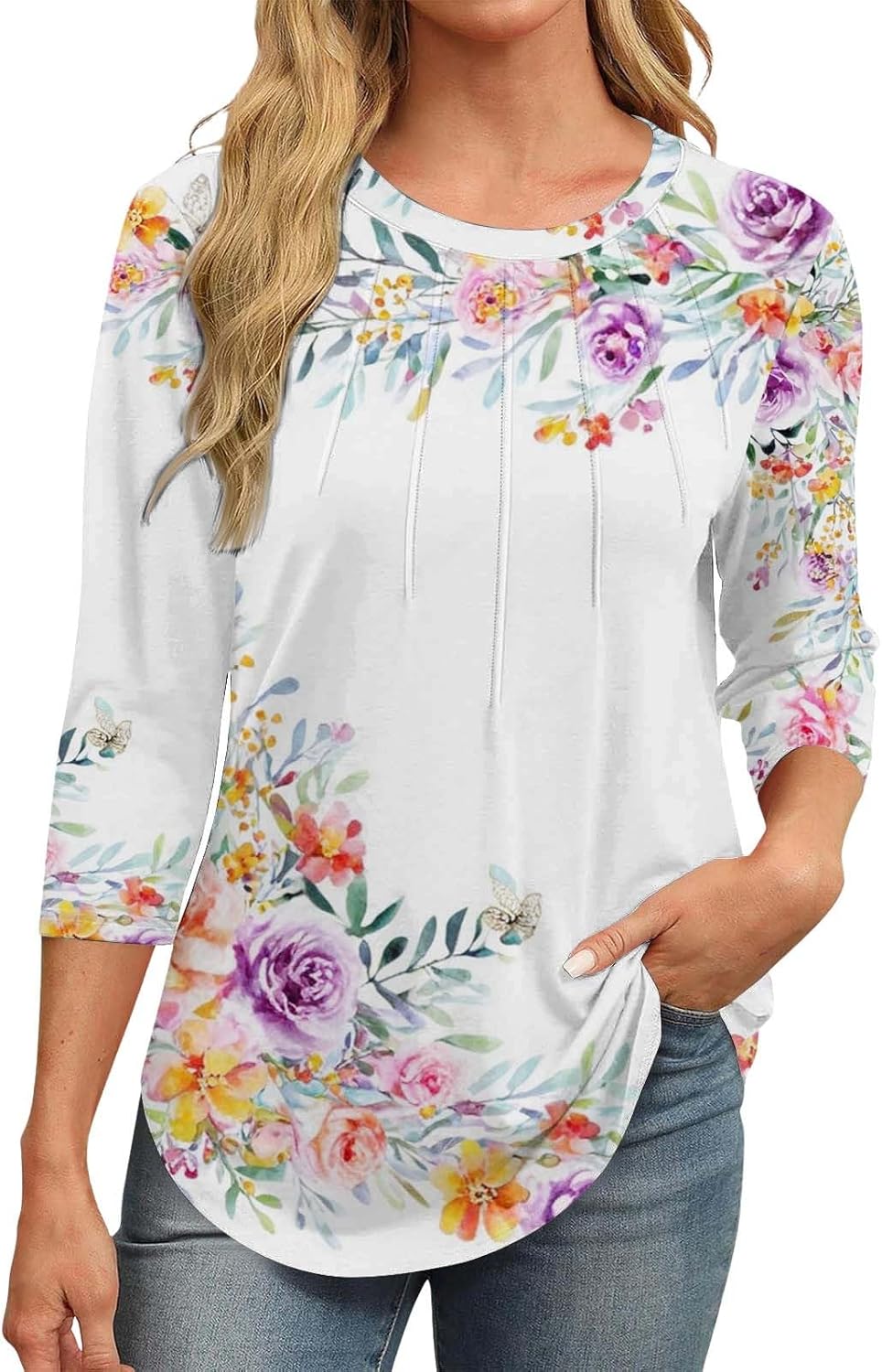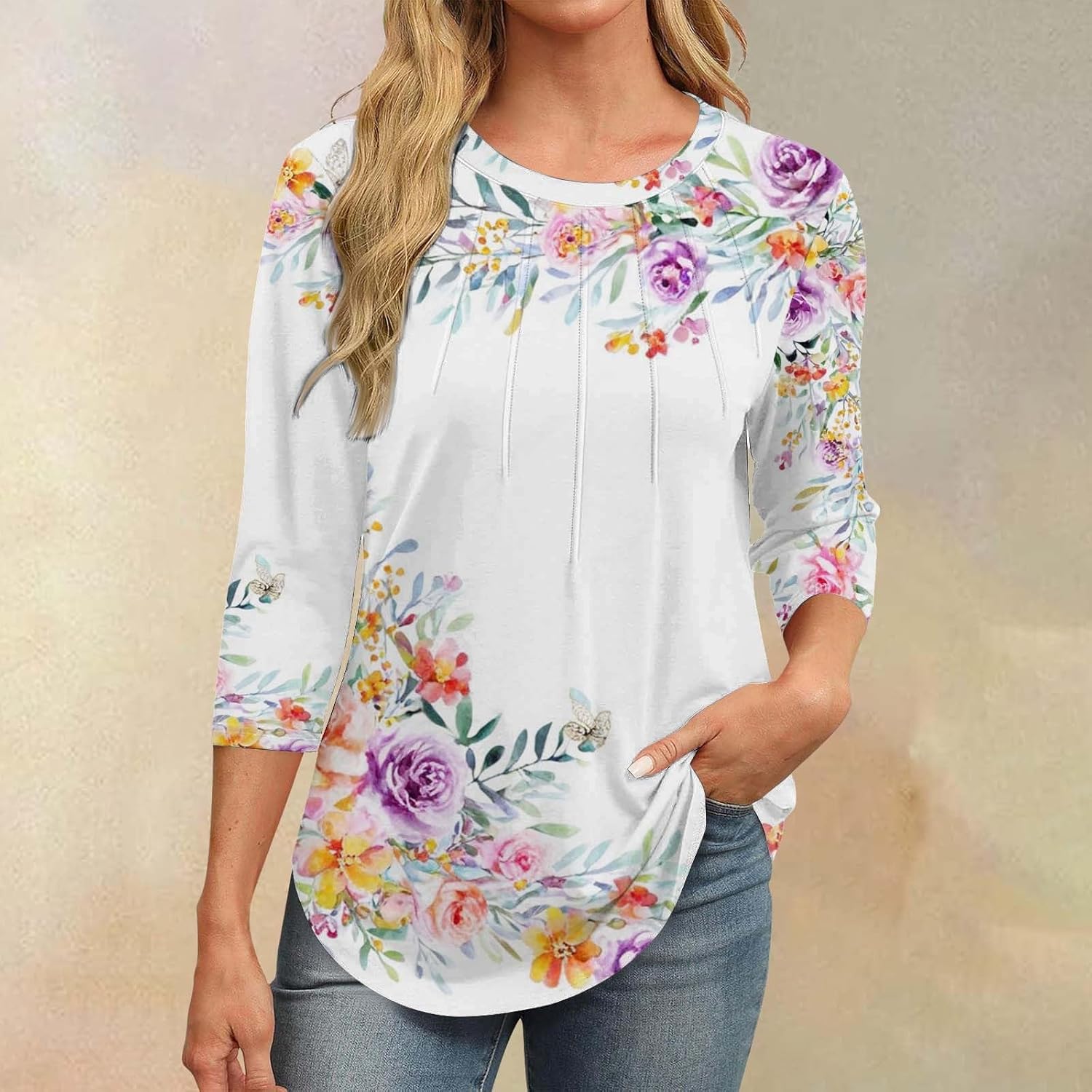 3/4 length women Round neck tops Casual Tunic Cups B …