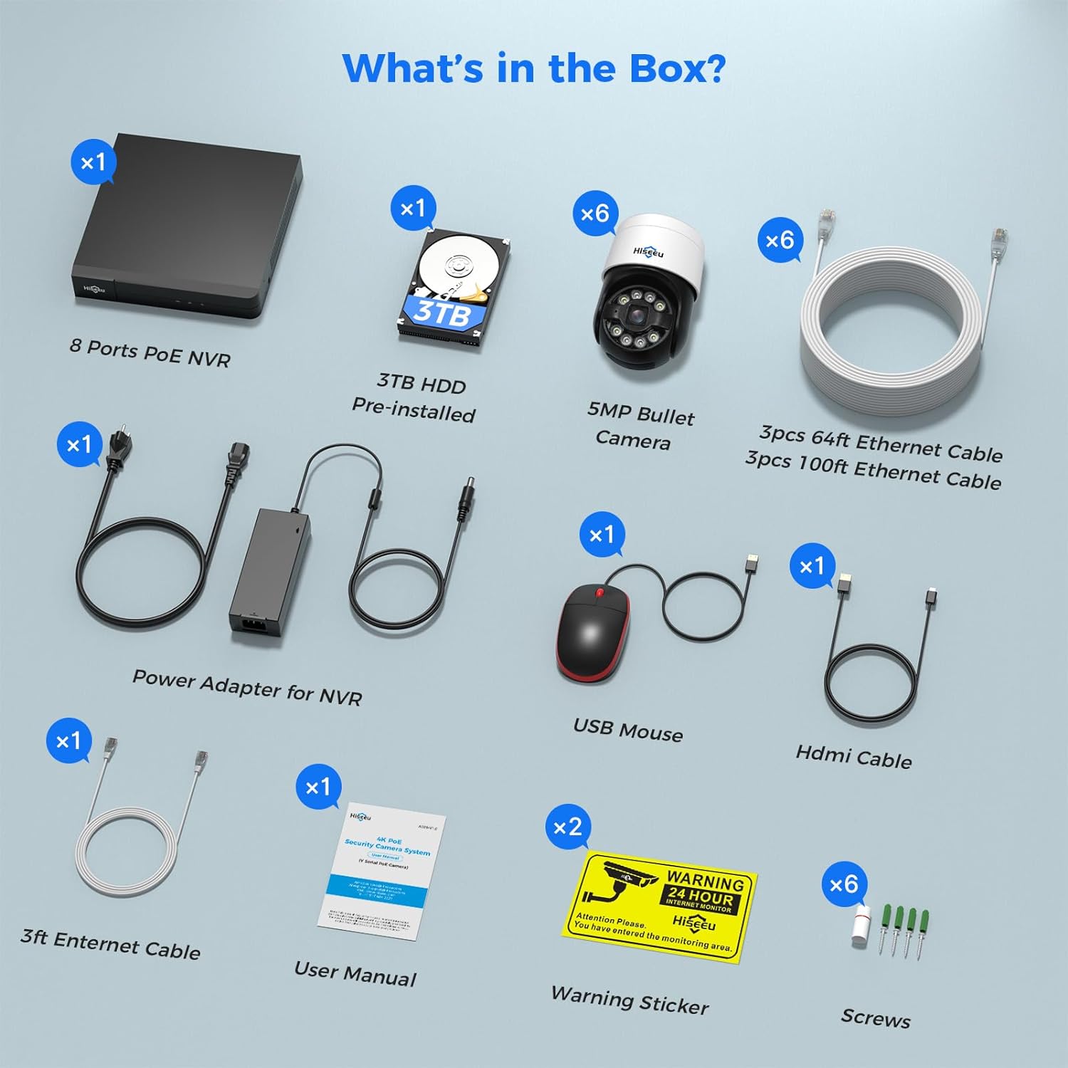 Product Description Hiseeu 4K NVR Security Camera System + 6PCS 5MP PoE Pan Tilt IP Cameras
