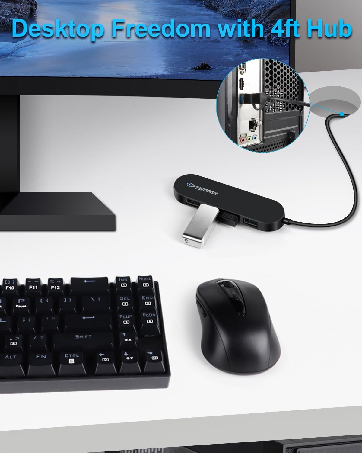 【Extended Cable for Ultimate Convenience】: Position the USB Hub anywhere you desire with the generous 4ft cable length and included Velcro strap. Keep your workspace organized and clutter-free.