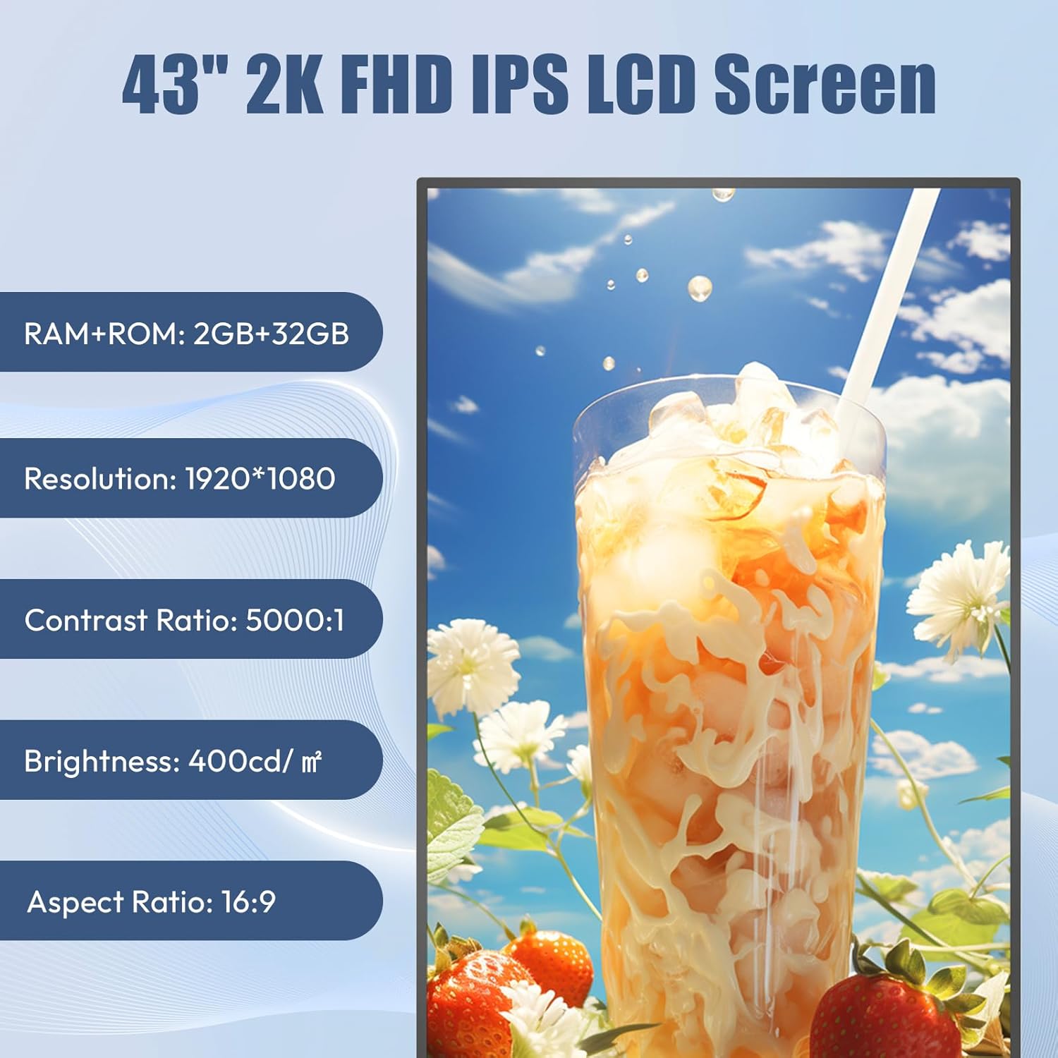 【FHD Display】The FHD IPS display of this digital kiosk delivers an immersive visual experience, presenting content with exceptional clarity and detail. From vibrant colors to crisp images, the 1080p resolution ensures every visual element is accurately represented, making it ideal for conveying information, displaying advertising, or showcasing a brand in stunning quality.
