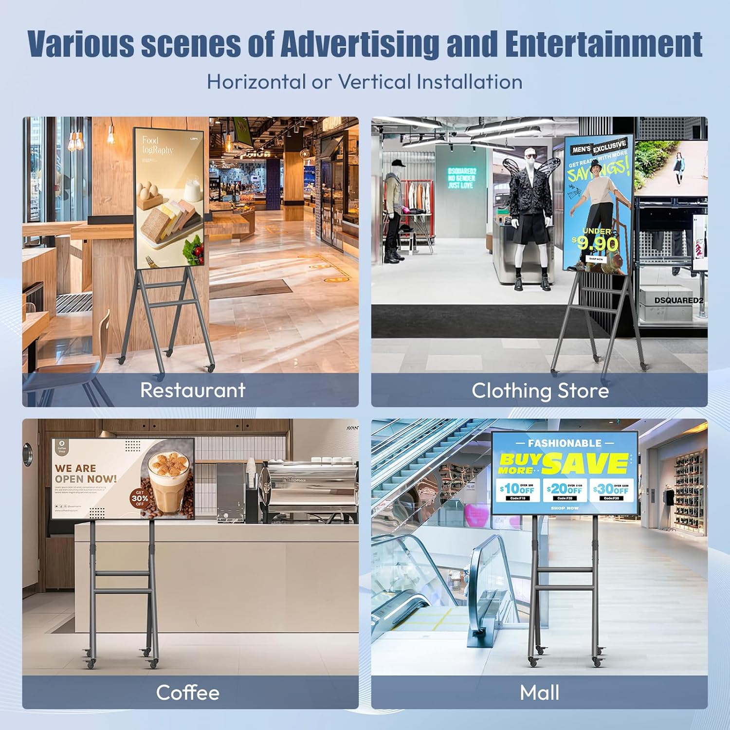 【Various Scenarios】This product is versatile and adaptable, and fits well into a wide range of scenarios and applications. Whether used in retail environments for digital signage, educational environments for interactive learning, corporate offices for presentations, or entertainment venues for engaging displays, its diverse capabilities meet different needs and purposes, making it a versatile solution for a variety of contexts and environments.