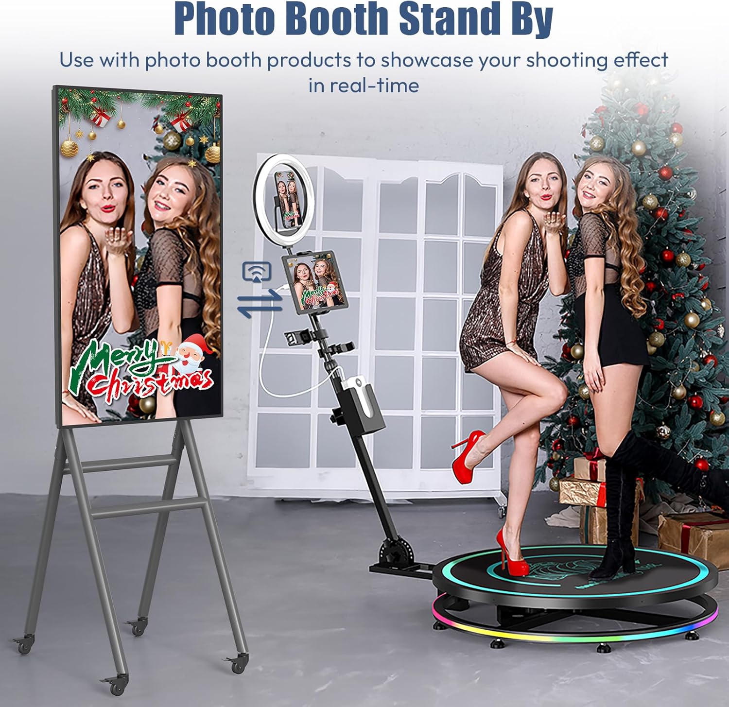 【Stand By Photo Booth】This semi-outdoor digital signage kiosk is a good match for photo booth series products. It can replace TV and be used with 360 photo booth and iPad photo booth. You can conveniently put your media contents on the screen with your phone, also can do screen mirroring to show the real-time screen from your phone. Users can capture memories and create fun, interactive experiences for guests. Perfect for events, parties, and social gatherings.