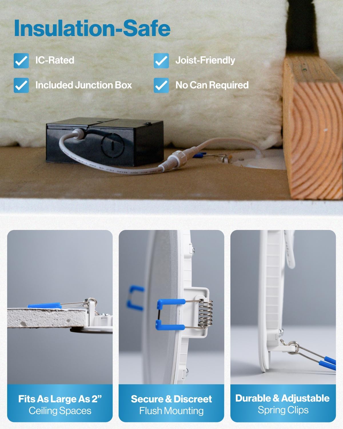 IC classification: The thin descending lights of Sunco are classified by IC, which means that they are thermally protected and are not overheat or light surrounding insulation on the roof or the space of the upper beam. Both the light and the union box are safe for direct contact with ceiling insulation.