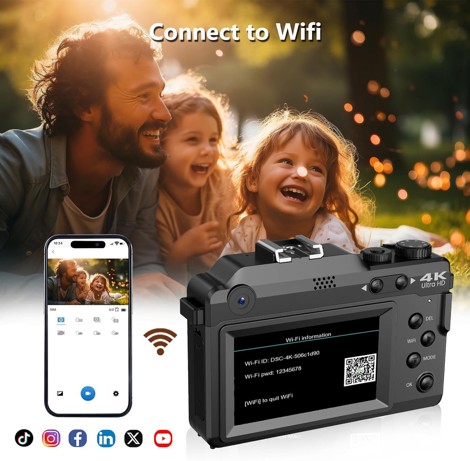 【Wifi & Webcam for PC】You can connect your cell phone to the camera's WiFi to remotely control the camera shooting, and the photos taken can be immediately downloaded to your cell phone for easy sharing with friends; The vlogging camera also has a webcam function, you can make live broadcasts, video calls and online conferences, which is more convenient