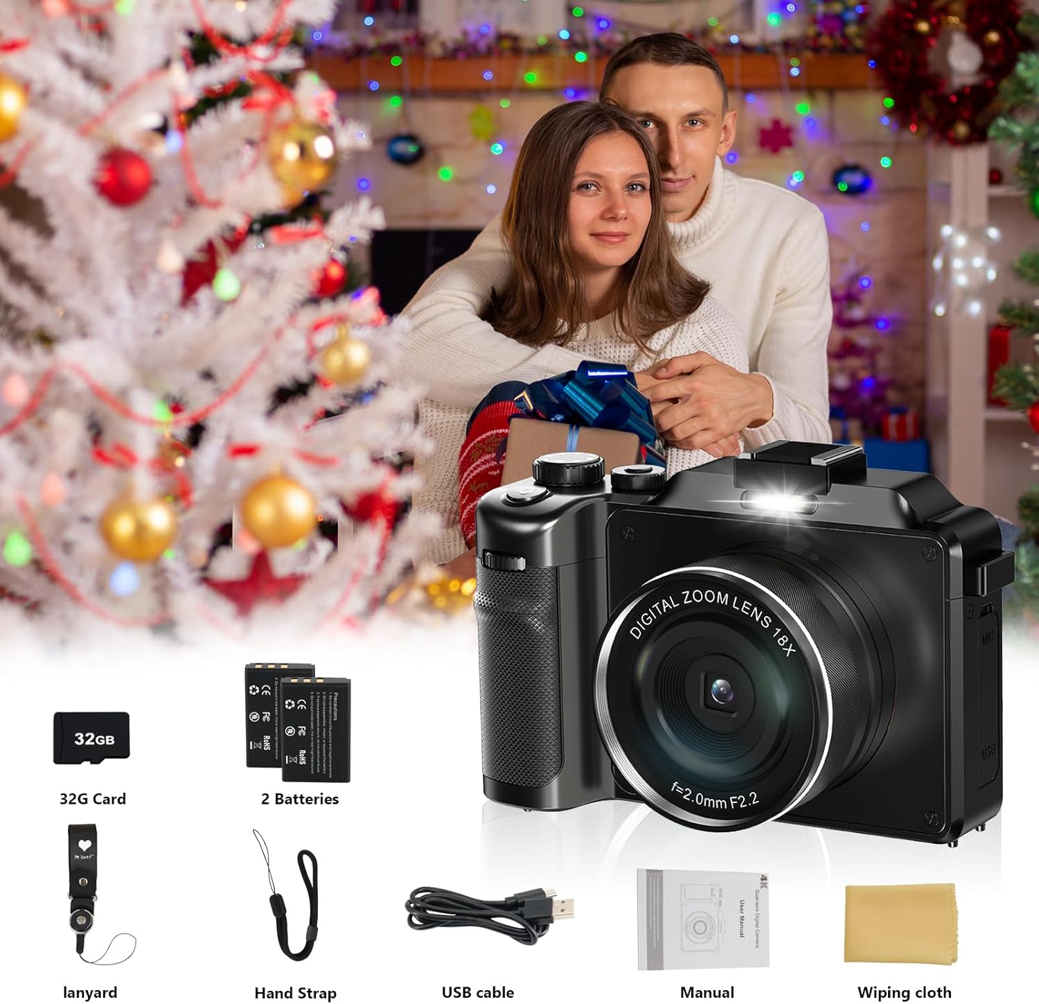 【Camera for Beginners】We provide you with a 32G TF card so you can use the camera as soon as you receive it, 2 batteries so you don't have to worry about the camera running out of power, the camera is easy to use and has a nine-panel feature makes composing an image even easier, making it beginner-friendly