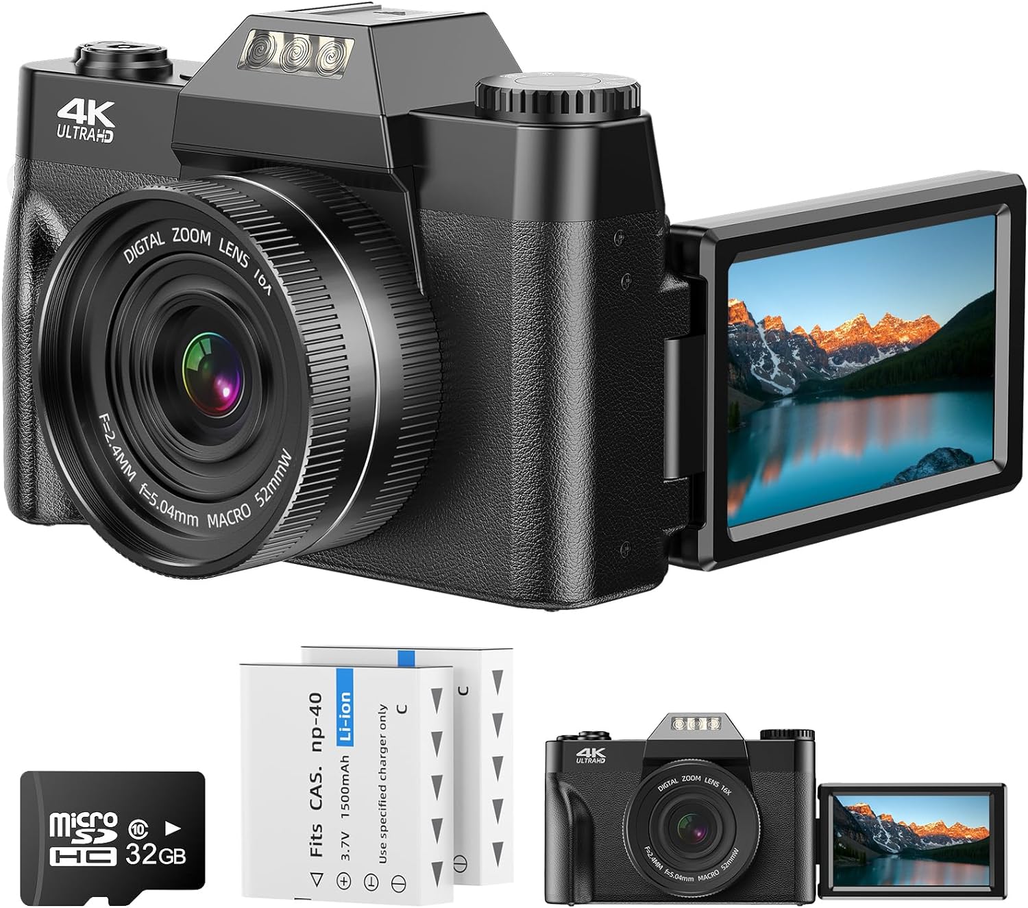 🎥【Flip Screen Camera for Vlogging】 Spin, pose and take photos! Our compact digital camera with 180° flip screen makes taking selfies and vlogging effortless. Whether it's spontaneous get-togethers or well-planned family portraits, you'll always be in the photo. Capture stunning selfies or group photos with ease, making the photography vlogging camera the preferred choice for influencers, vloggers, and families eager to preserve every moment.