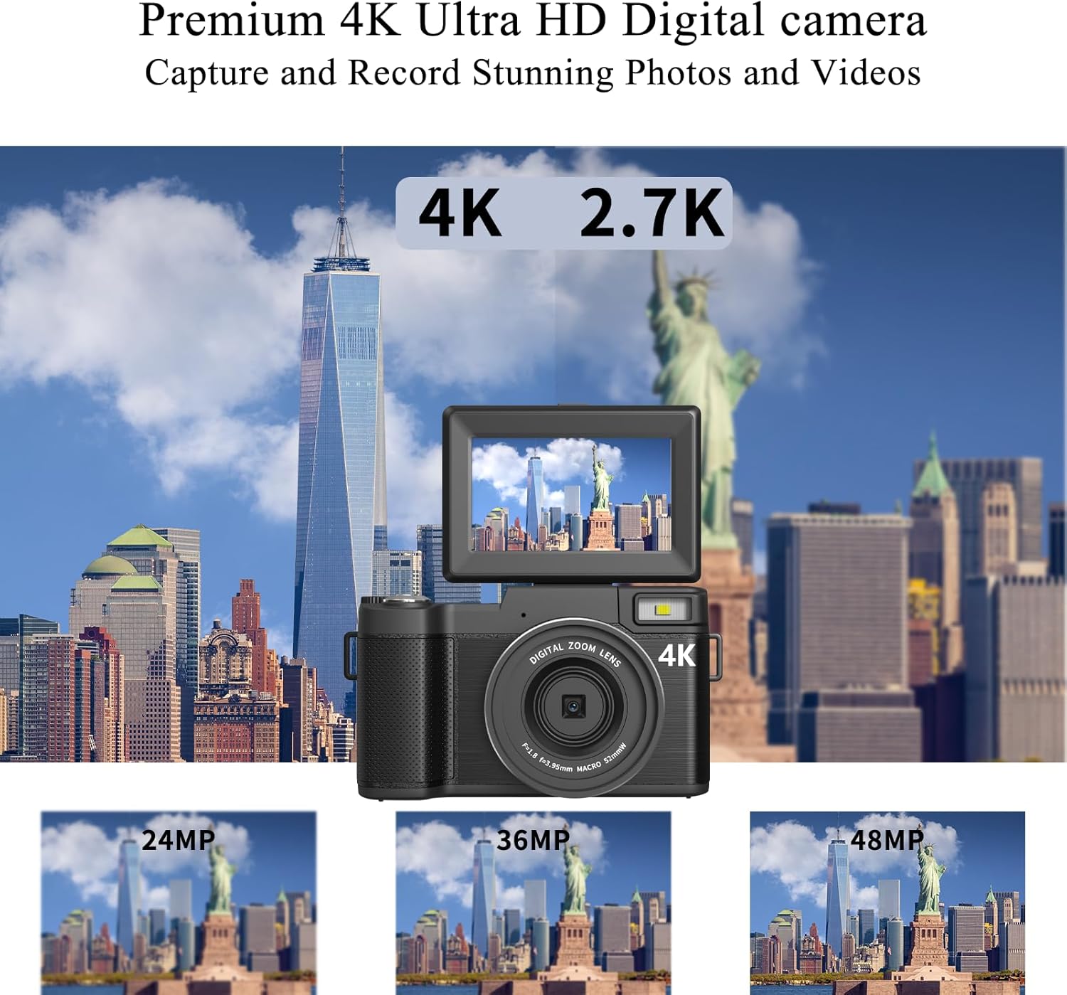 48MP Autofocus 4K UHD Digital Camera: 4K digital camera for photography can record video with 4K resolution (10FPS) and take 48MP HD images, record every moment in high quality. Autofocus ensures subjects are sharp and in focus, firm grip, capturing even the smallest details effortlessly. (Note: It will NOT autofocus for videos, ONLY for images)